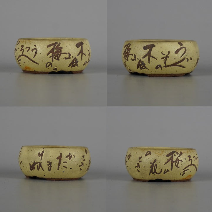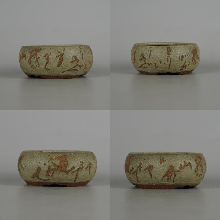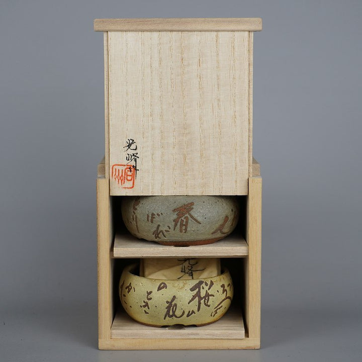 盆栽鉢 光峰 2点セット 小鉢 長辺 約7.8cm 丸鉢 詩 釉薬 共箱 共布 観賞用 n1198412713
