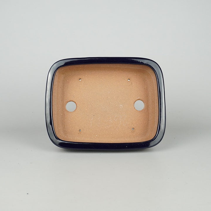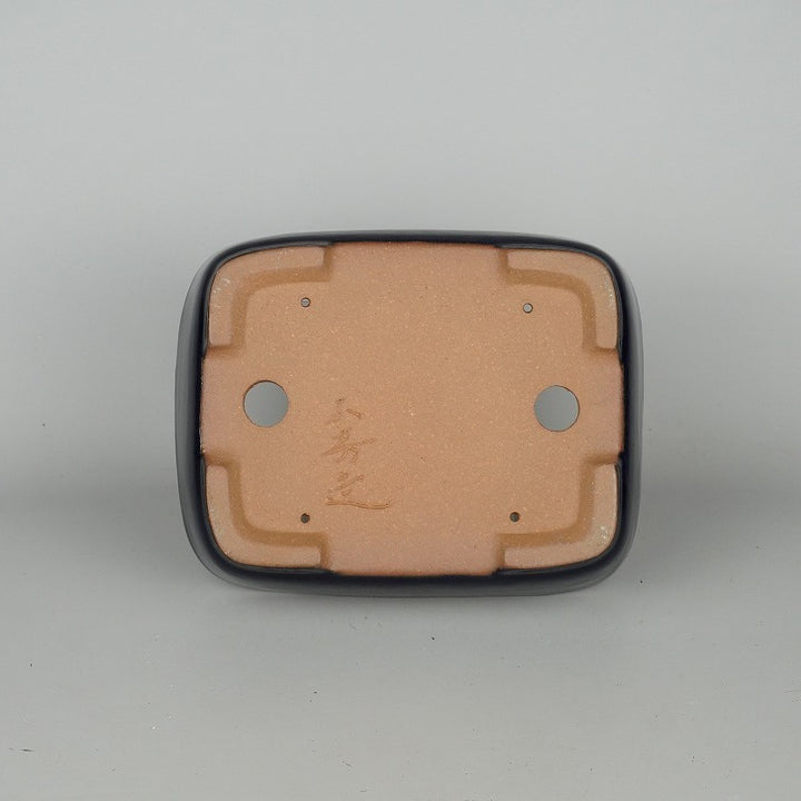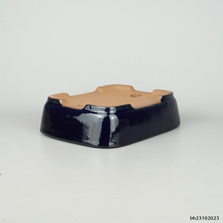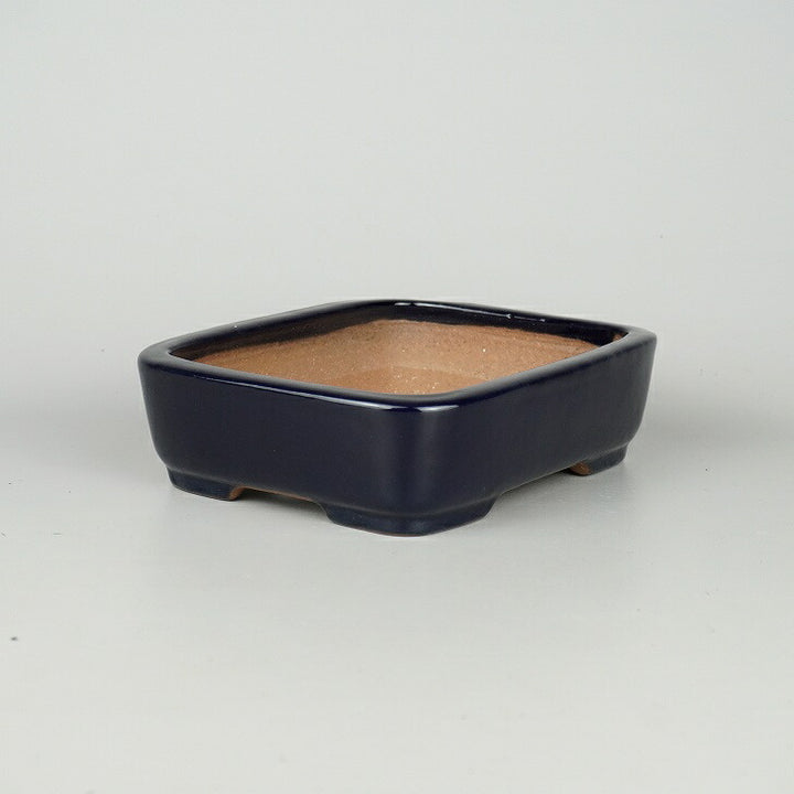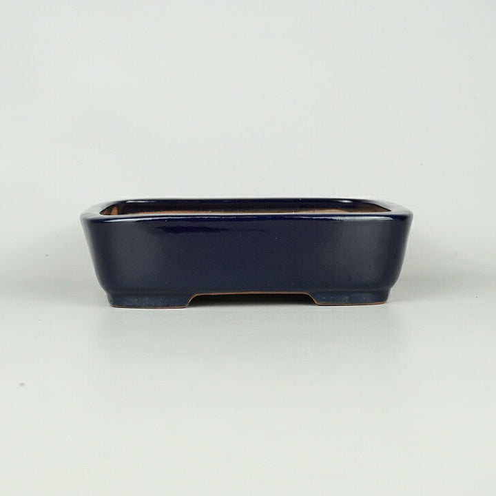盆栽鉢 常滑 山房造 小型 長辺 約19.5cm 長方鉢 撫角 切立 長角 瑠璃 釉薬 新品 数量物 s1198412185