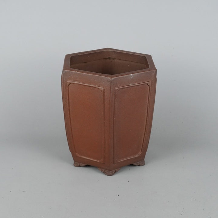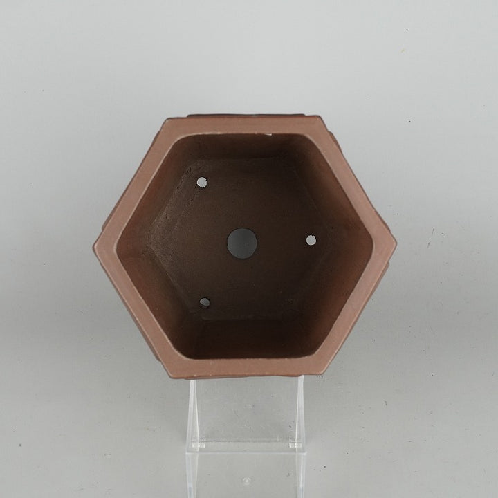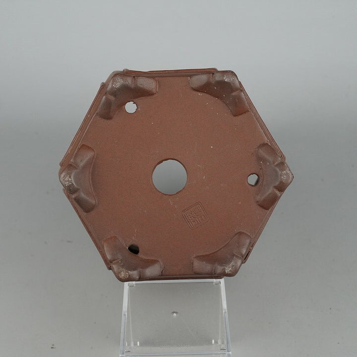 盆栽鉢 常滑 柴勝 小型 高さ 約 16.3cm 六角鉢 雲足 額付 懸崖 泥物 現品 新品 本名 柴田勝一 昭和52年に柴勝苑開窯。 以前は押型成型が主体でしたが、近年はタタラと押型による手作り主体に移行。常滑朱泥、常滑紫泥鼠泥などの泥色鉢から釉色鉢まで幅広くこなされ、色や型も豊富である。...