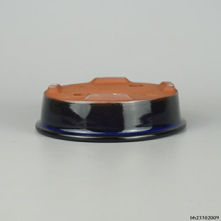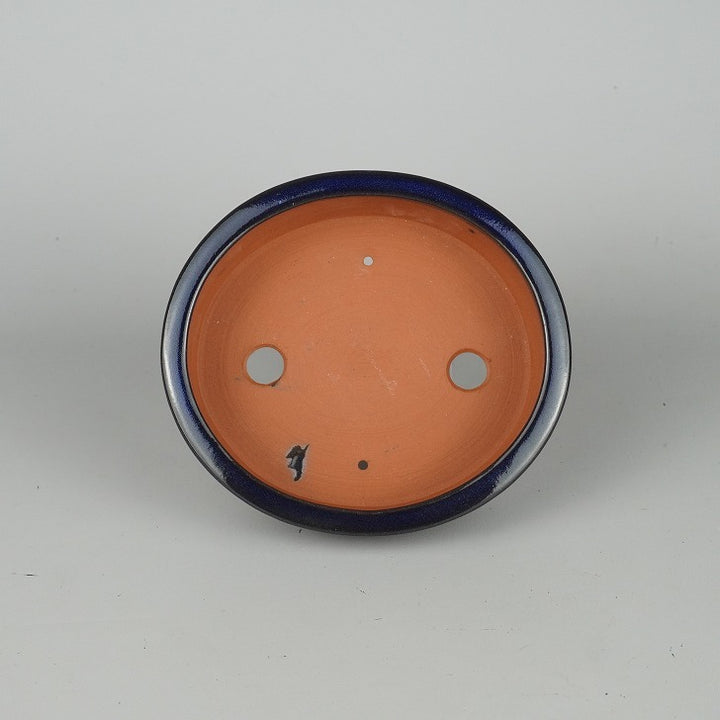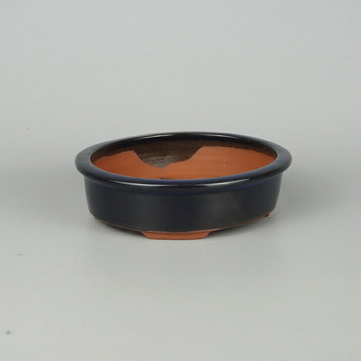 盆栽鉢 常滑 燿山窯 英明 小型 長辺 約14.8cm 楕円鉢 外縁 小判 瑠璃 釉薬 新品 数量物 h1207148702