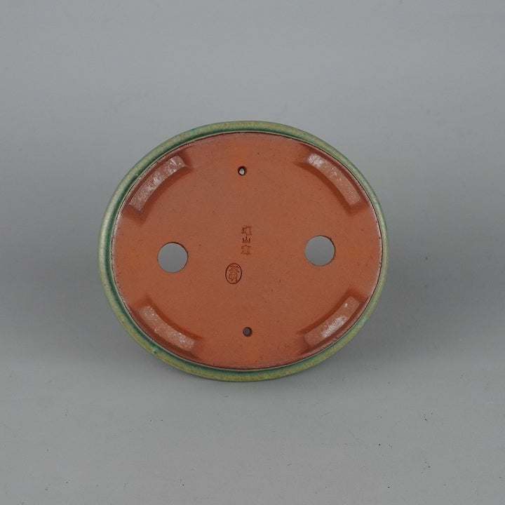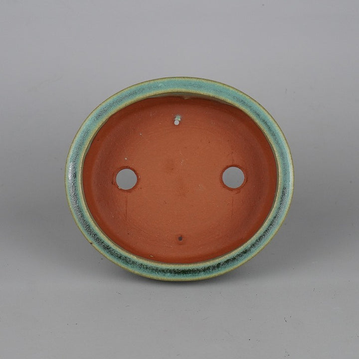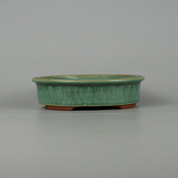 盆栽鉢 常滑 燿山窯 英明 小型 長辺 約14.8cm 楕円鉢 外縁 小判 緑釉 釉薬 新品 数量物 o1198425923