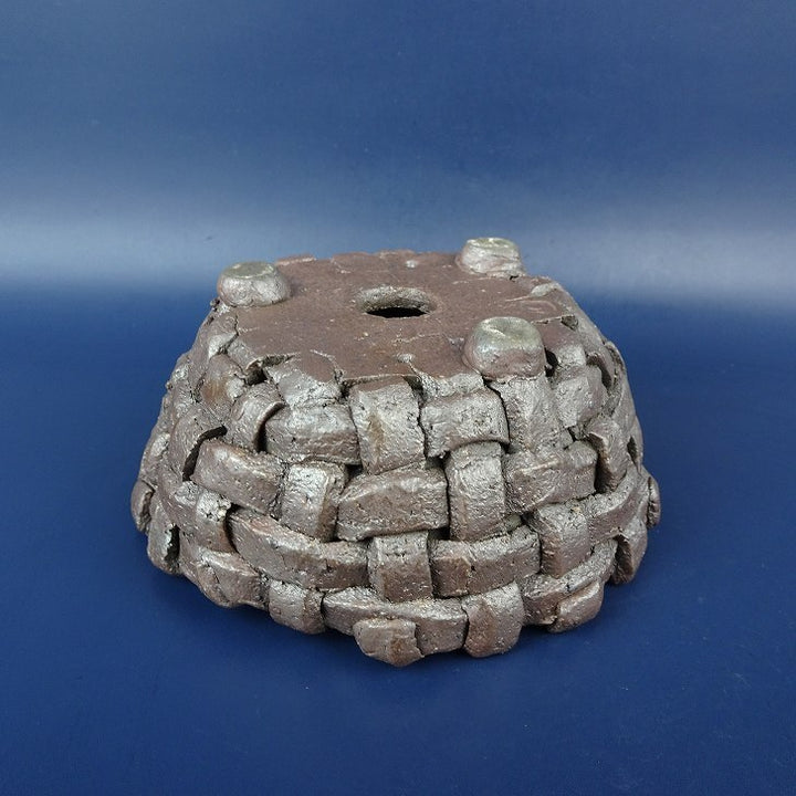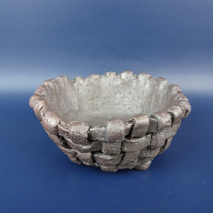 盆栽鉢 常滑 片 片岡 美津江 小型 長辺 約12.3cm 丸鉢 編み鉢 焼〆 新品 数量物 o1198422381
