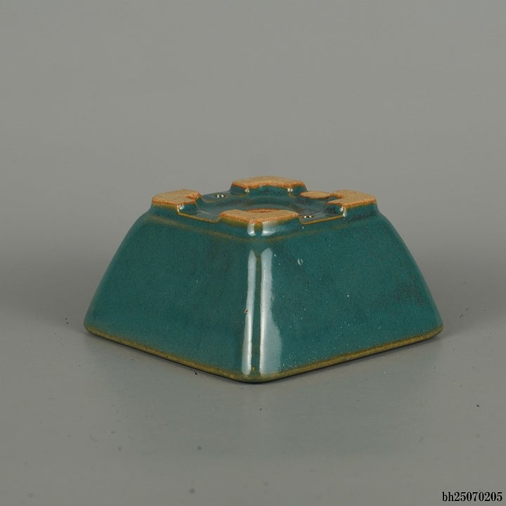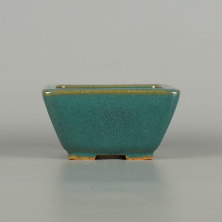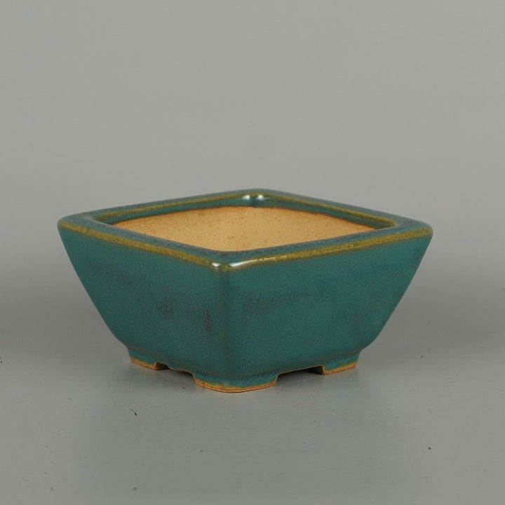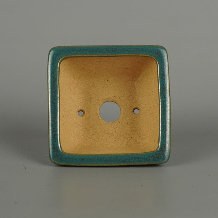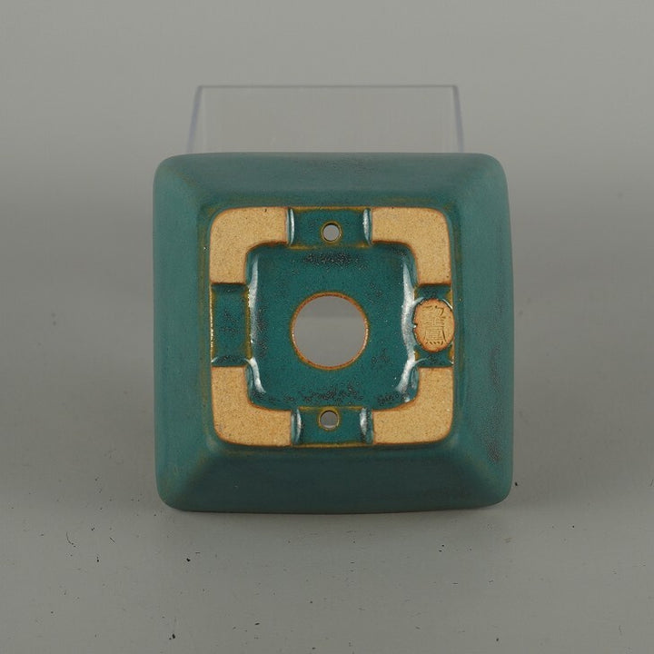 盆栽鉢 常滑 黎鳳 小鉢 長辺 約 9.8cm 正方鉢 オリベ 釉薬 新品 数量物 本名 片岡勝資 常滑では焼締陶が主体で釉色主体として制作する人が少ない中、主として釉色樹鉢や釉色水盤をつくる。中国古渡り、中渡りの白交趾、均釉再現に努め若くして定評を得る。現在は常滑のみならず日本を代表する釉色盆器の作り手の一人である。近年は南蛮風の焼締陶を手掛け、部分的に灰釉のかかったものなど、程よい味わいの南蛮風で人気がある。 量産品の焼き物の為、サイズや絵...
