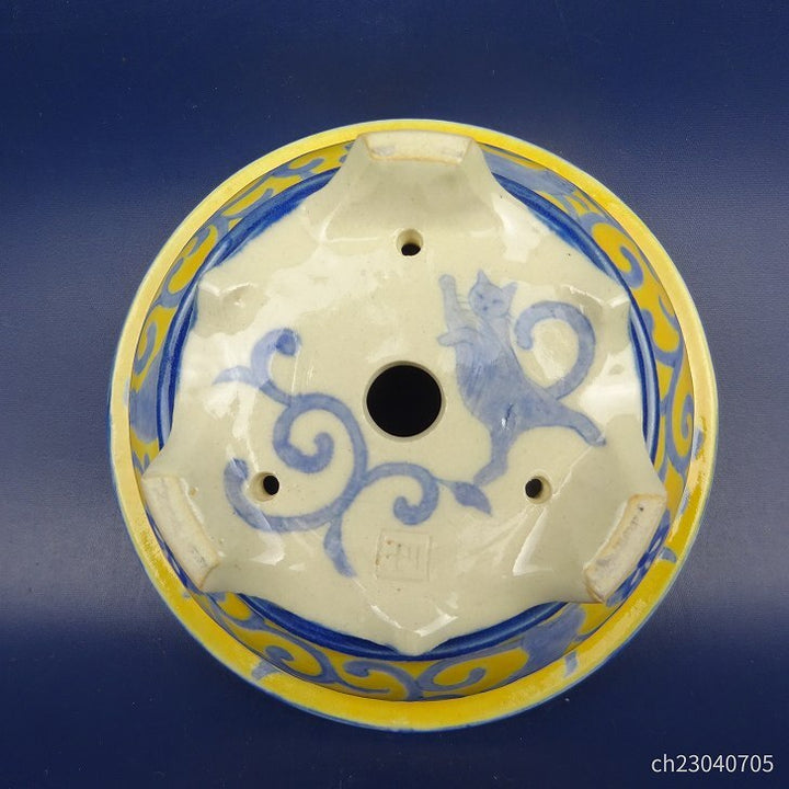盆栽鉢 干川 フクダ工房 小型 長辺 約12.5cm 丸鉢 外縁 猫 絵鉢 新品 d1198423232