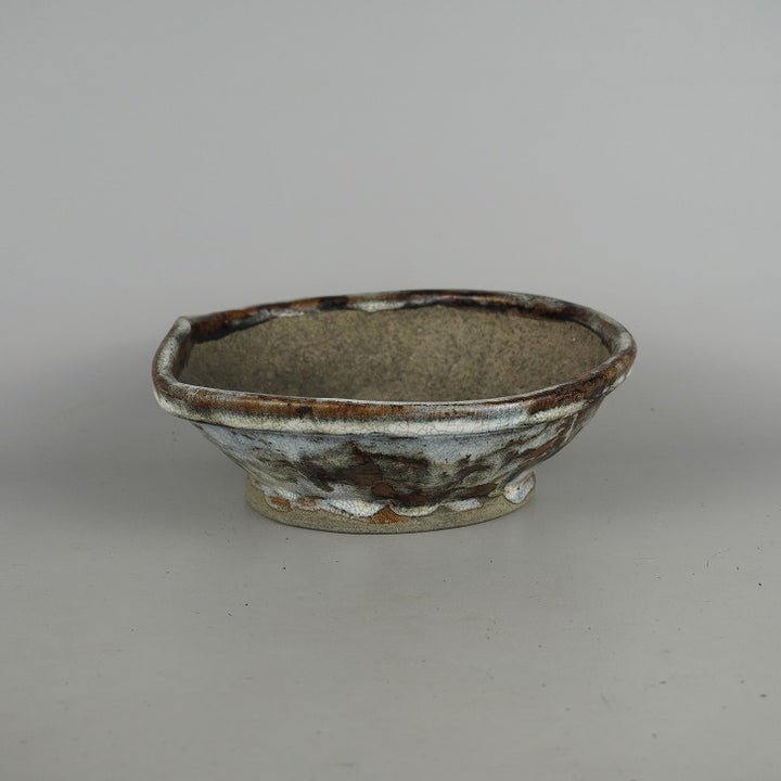 盆栽鉢 文山 越前文山 中型 長辺 約 21.2cm 鯖江園芸 変形 丸鉢 釉薬 現品 文山・越前文山 越前文山 1973年に鯖江園芸を開園する。 地元に伝わる越前焼に則って独自の作風を確立し、手びねりによる焼締の他、辰砂などの釉薬や象嵌を施したものがある。...