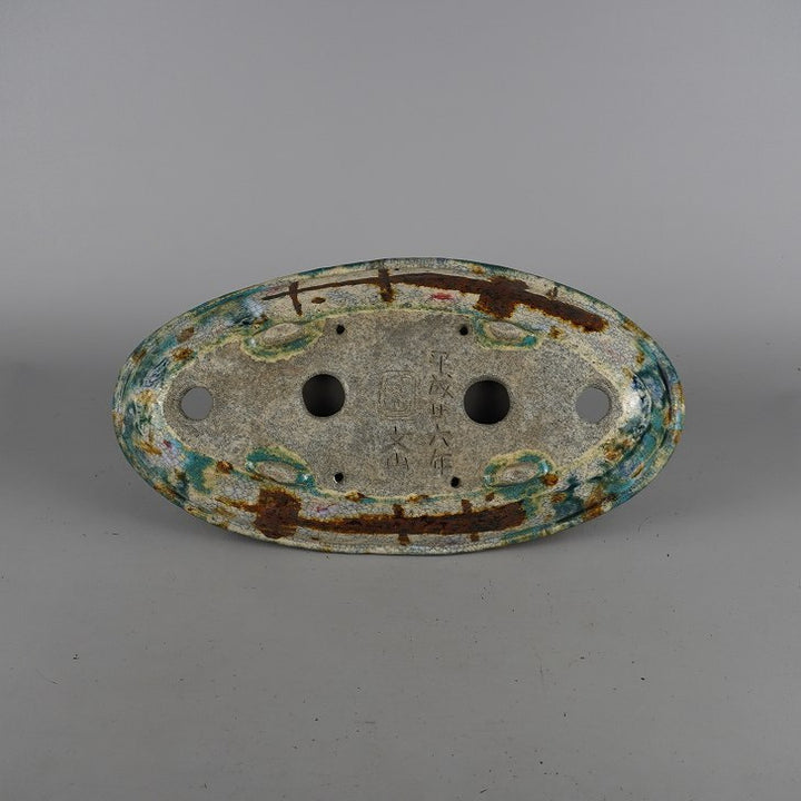 盆栽鉢 文山 越前文山 中型 長辺 約 23.5cm 鯖江園芸 楕円鉢 釉薬 v1198442753