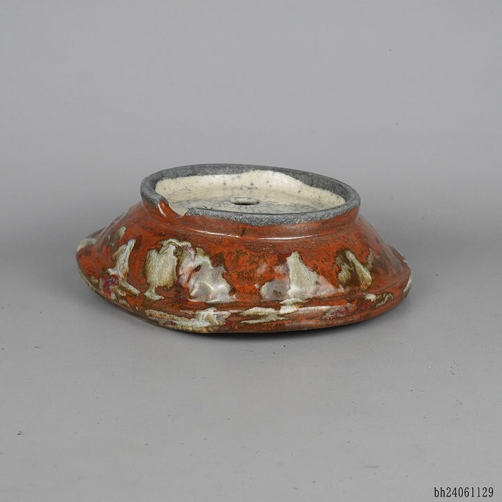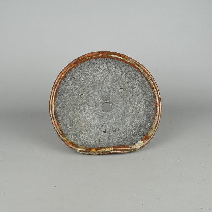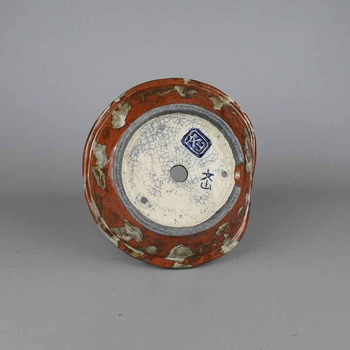 盆栽鉢 文山 越前文山 中型 長辺 約21cm 変形 丸鉢 釉薬 現品 新品 越前文山 1973年に鯖江園芸を開園する。 地元に伝わる越前焼に則って独自の作風を確立し、手びねりによる焼締の他、辰砂などの釉薬や象嵌を施したものがある。...