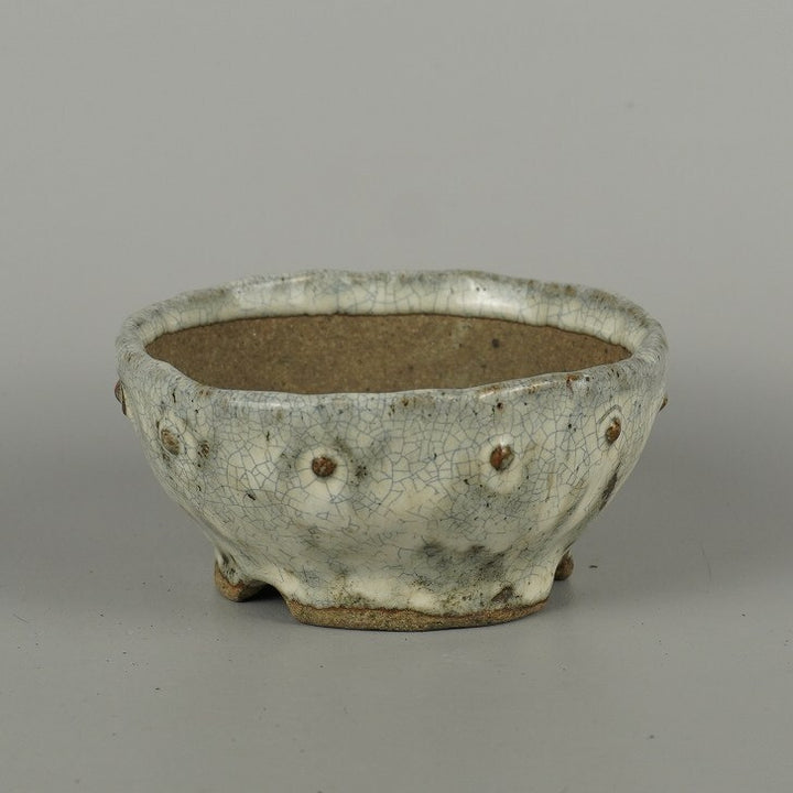 盆栽鉢 文山 越前文山 小型 長辺 約 10.4cm 鯖江園芸 丸鉢 鋲打 釉薬 鑑賞 観賞用 現品 文山・越前文山 越前文山 1973年に鯖江園芸を開園する。 地元に伝わる越前焼に則って独自の作風を確立し、手びねりによる焼締の他、辰砂などの釉薬や象嵌を施したものがある。...