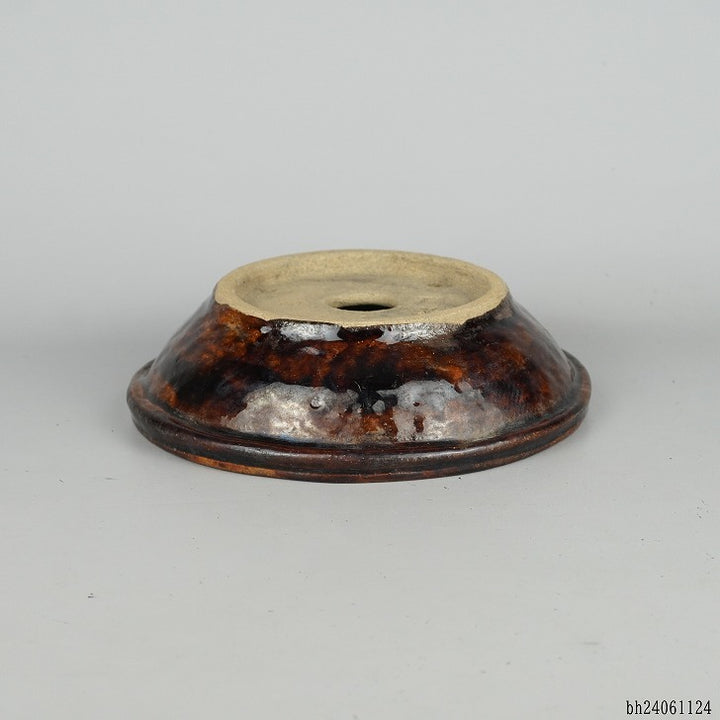 盆栽鉢 文山 越前文山 小型 長辺 約20cm 丸鉢 釉薬 新品 d1198425965