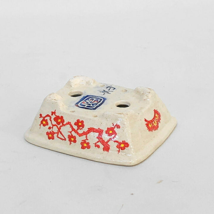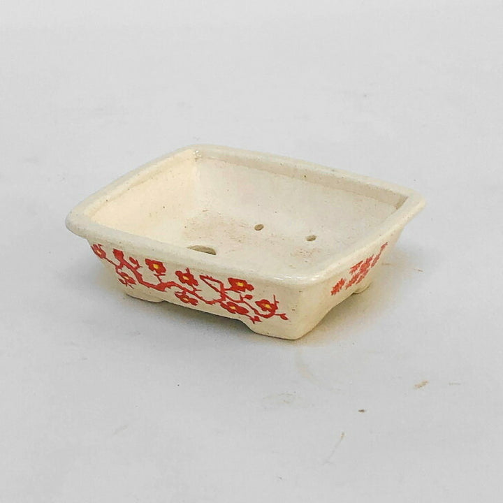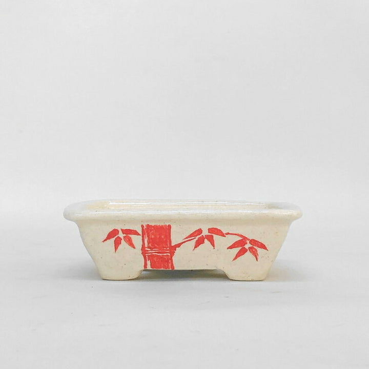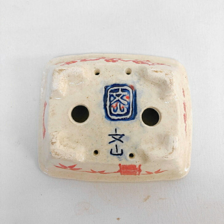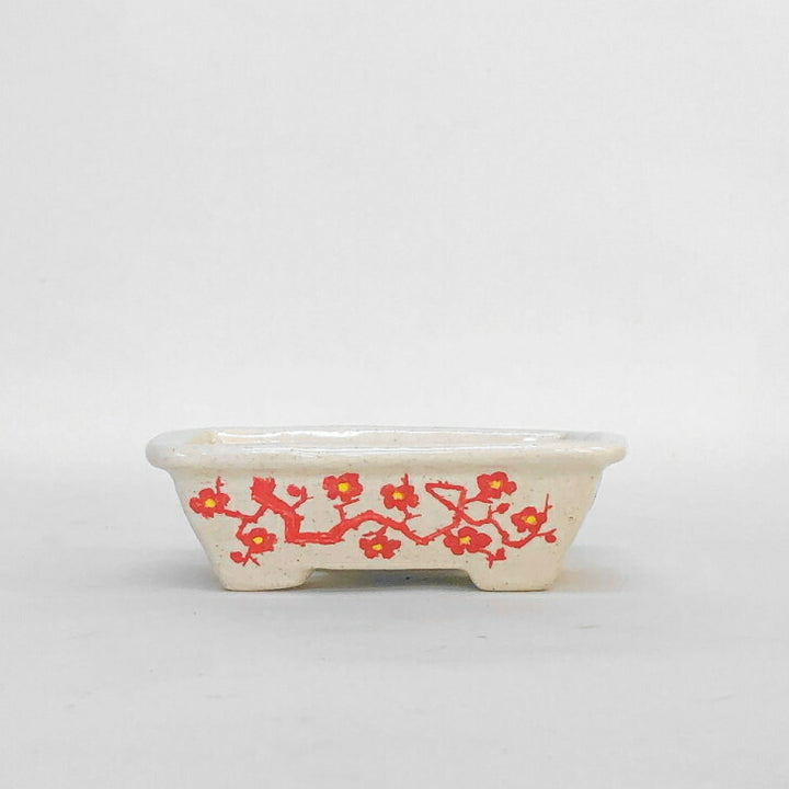 盆栽鉢 文山 越前文山 小型 長辺 13cm 長方鉢 赤絵 松 竹 梅 花 観賞用 新品 n1198409031