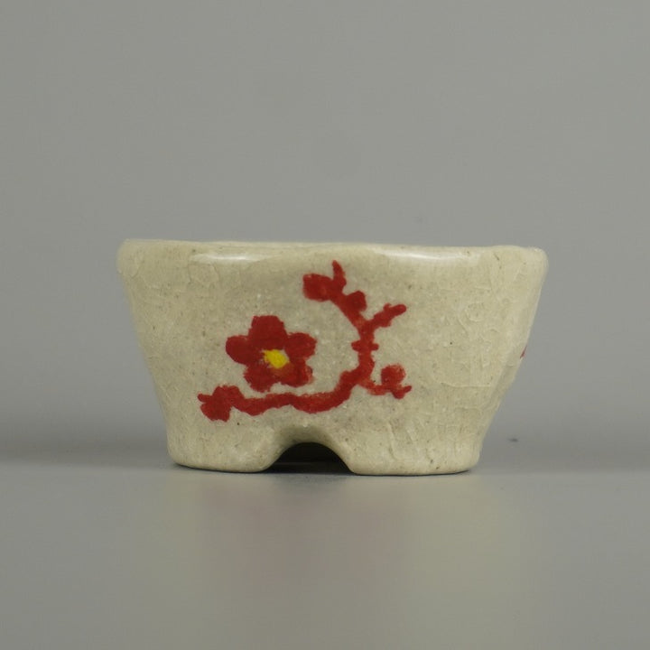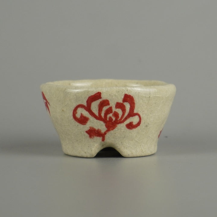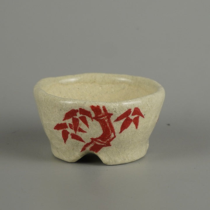 盆栽鉢 文山 越前文山 小鉢 長辺 約 6.1cm 丸鉢 赤絵 竹 笹 花 はな ハナ 鑑賞 観賞用 新品 q1209391090