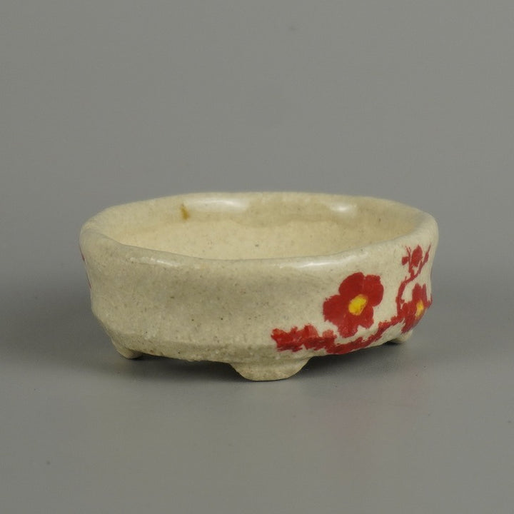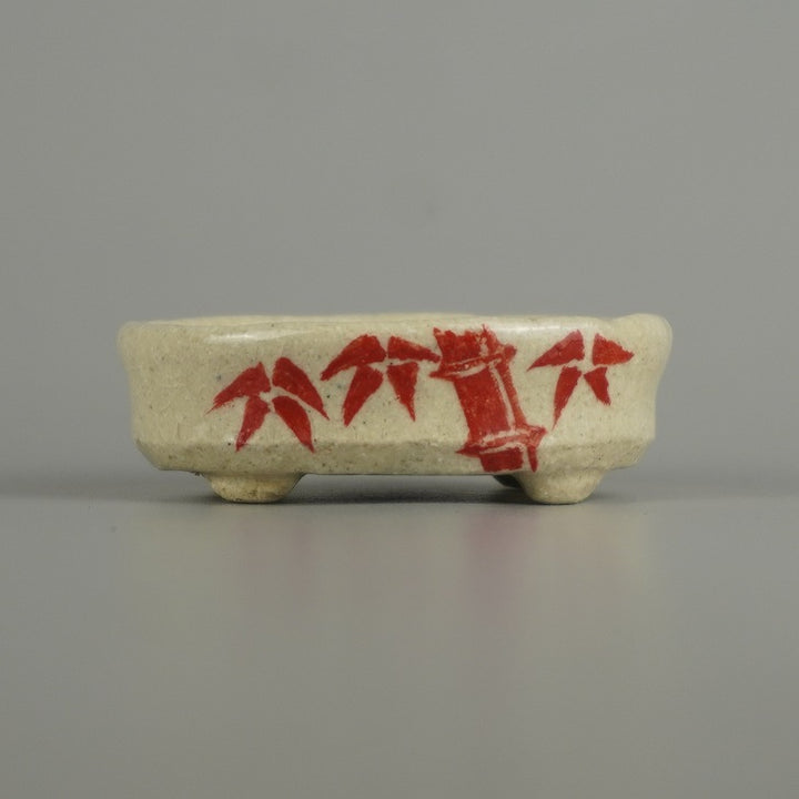 盆栽鉢 文山 越前文山 小鉢 長辺 約 6.6cm 楕円鉢 赤絵 竹 笹 花 はな ハナ 鑑賞 観賞用 新品 l1209390583