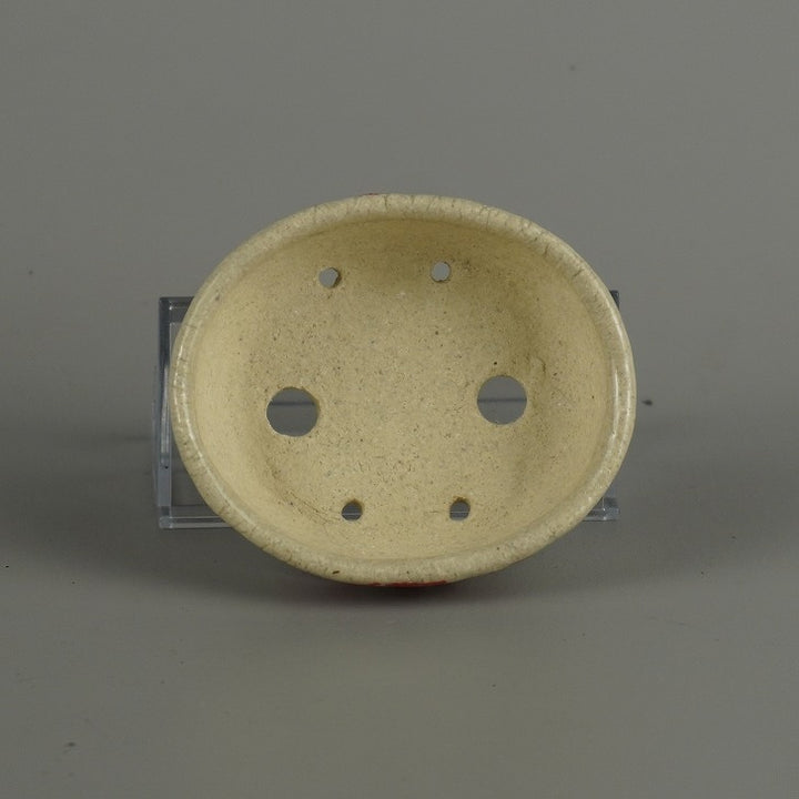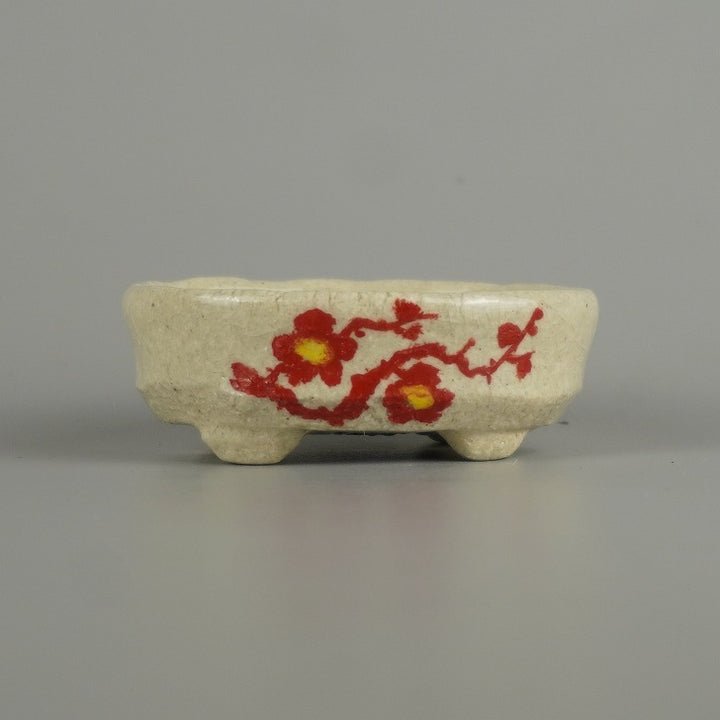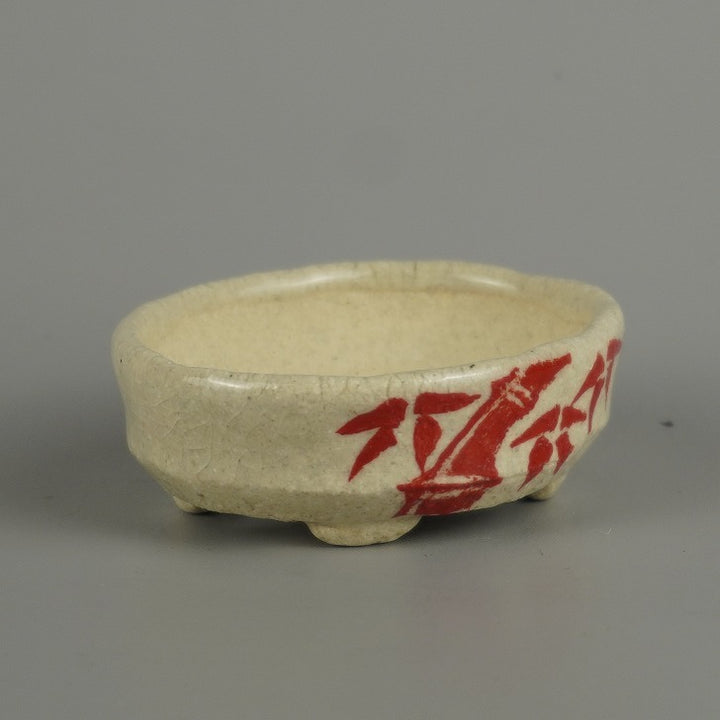 盆栽鉢 文山 越前文山 小鉢 長辺 約 6.7cm 楕円鉢 赤絵 竹 笹 花 はな ハナ 鑑賞 観賞用 新品 1209383757
