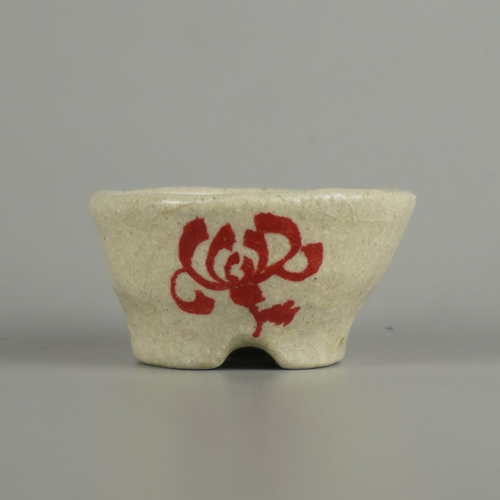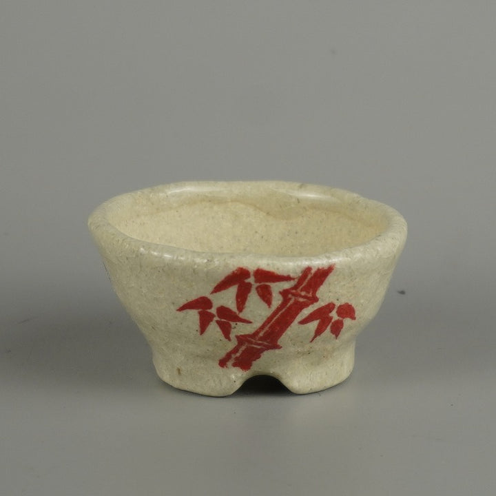 盆栽鉢 文山 越前文山 小鉢 長辺 約 6cm 丸鉢 赤絵 竹 笹 花 はな ハナ 鑑賞 観賞用 新品 n1209386988