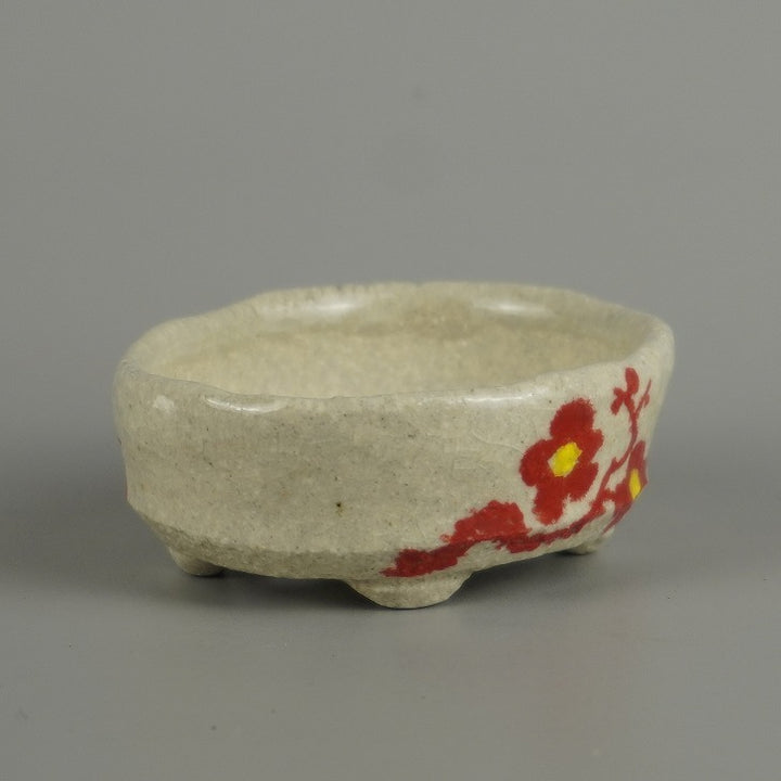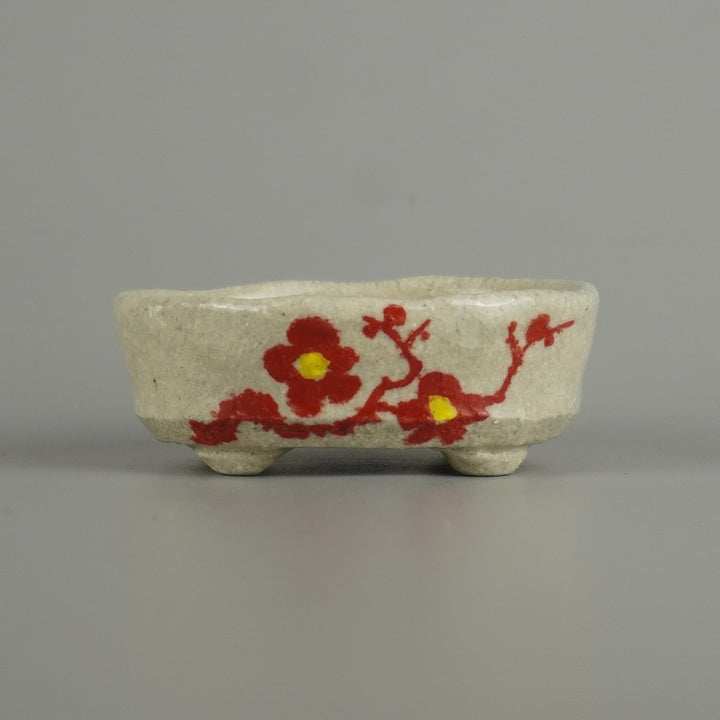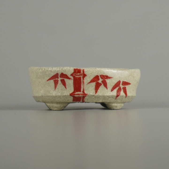 盆栽鉢 文山 越前文山 小鉢 長辺 約 7.2cm 楕円鉢 赤絵 竹 笹 花 はな ハナ 鑑賞 観賞用 新品 f1208286437