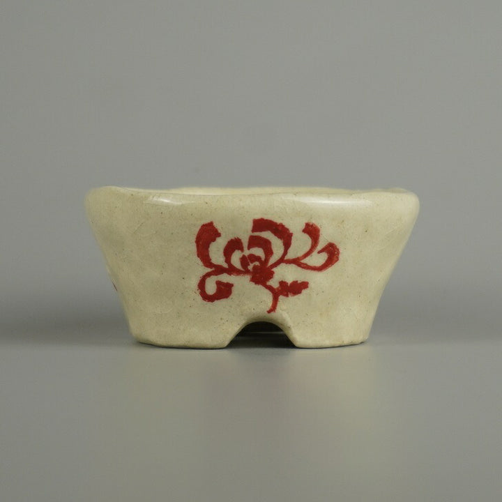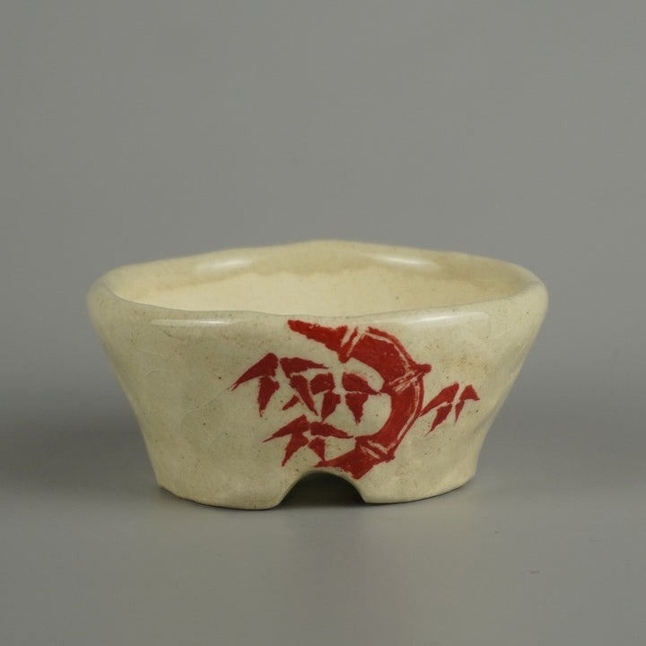盆栽鉢 文山 越前文山 小鉢 長辺 約 7.8cm 丸鉢 赤絵 竹 笹 花 はな ハナ 鑑賞 観賞用 新品 o1207554719