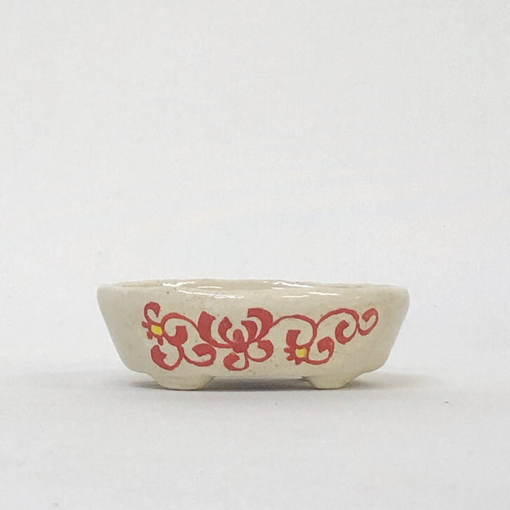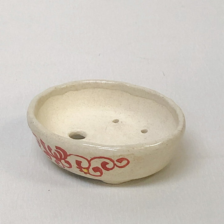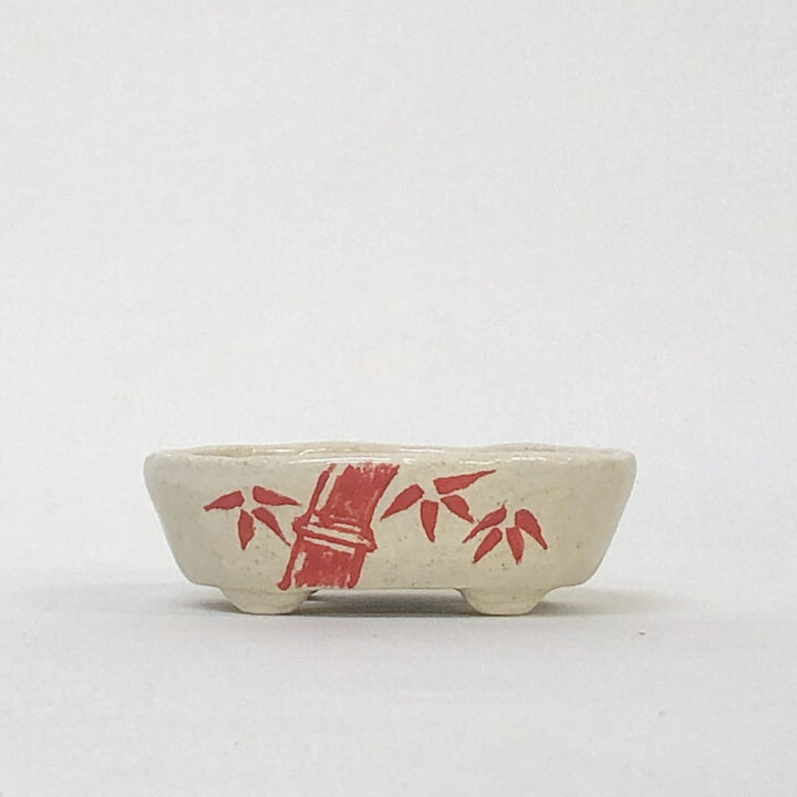 盆栽鉢 文山 越前文山 小鉢 長辺 約 8.5cm 楕円鉢 赤絵 竹 花 観賞用 新品 q1198417212