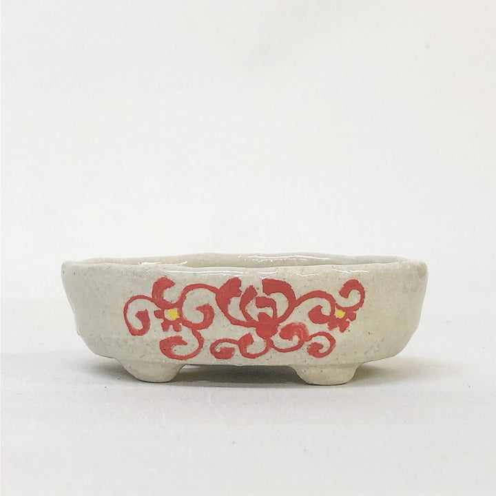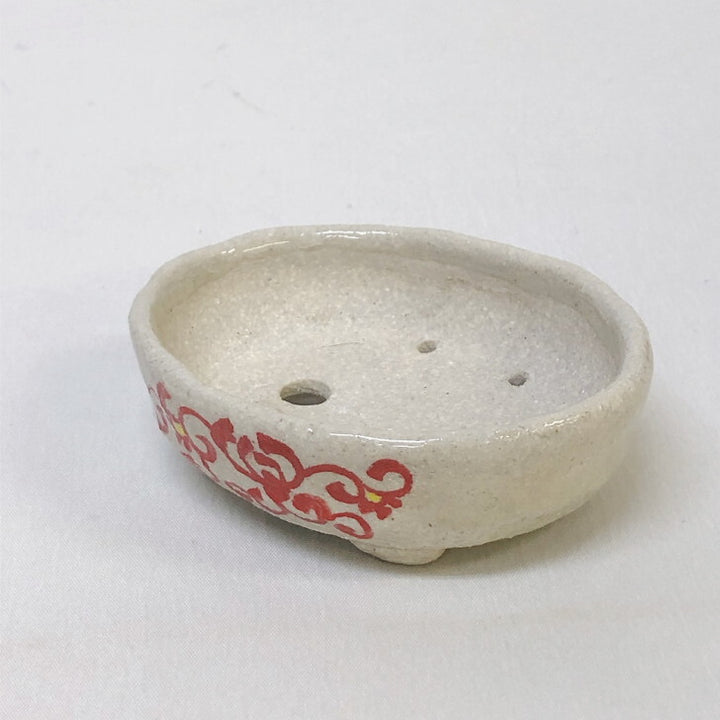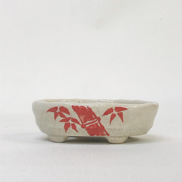 盆栽鉢 文山 越前文山 小鉢 長辺 約 9.8cm 楕円鉢 赤絵 竹 花 観賞用 新品 t1198404543