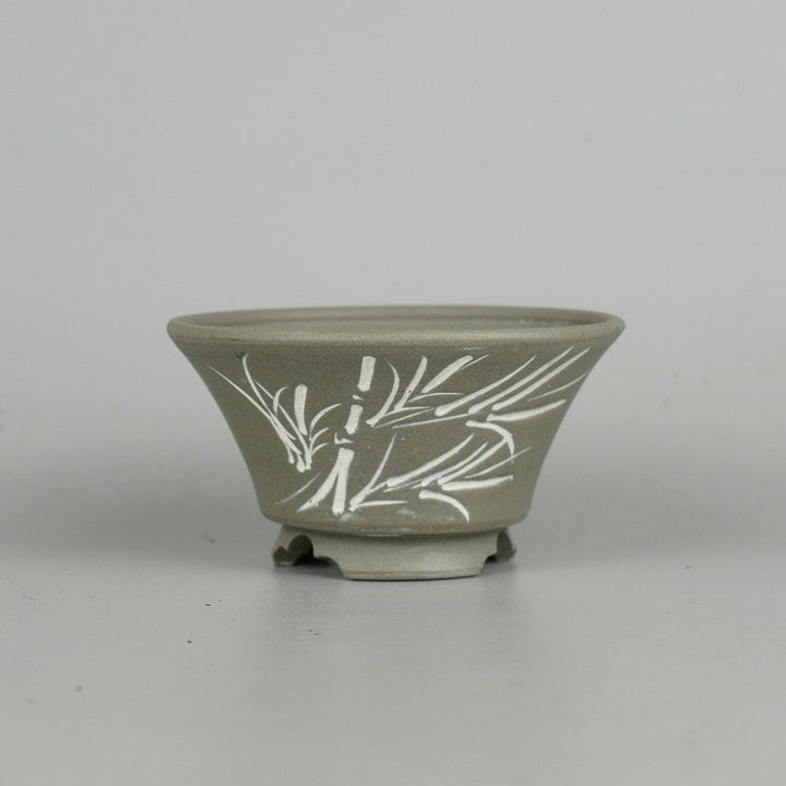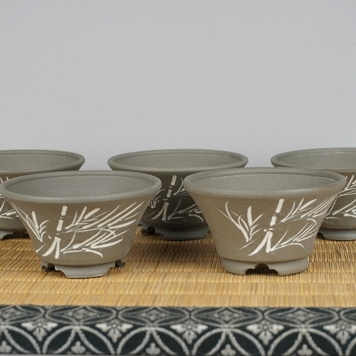 盆栽鉢 昇寿 小鉢 長辺 約8.8cm 丸鉢 竹 笹 絵鉢 数量物 新品 e1198415357
