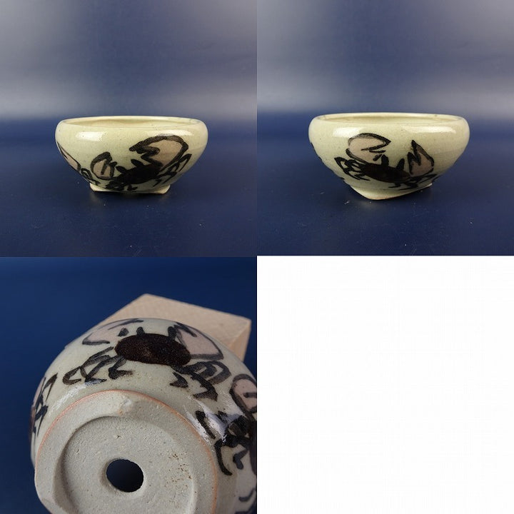盆栽鉢 是好 矩 小鉢 長辺 約 6.7cm 丸鉢 色絵 蟹 かに カニ 鑑賞 観賞用 新品 j1206101678