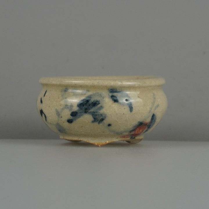 盆栽鉢 是好 矩 豆鉢 長辺 約 5.4cm 丸鉢 色絵 柿かき カキ 詩 ミニ鉢 観賞用 現品 新品 品名是好 矩...