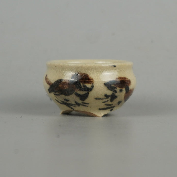 盆栽鉢 是好 矩 豆鉢 長辺 4cm 丸鉢 色絵 雀 すずめ スズメ ミニ鉢 観賞用 現品 新品 品名是好 矩...