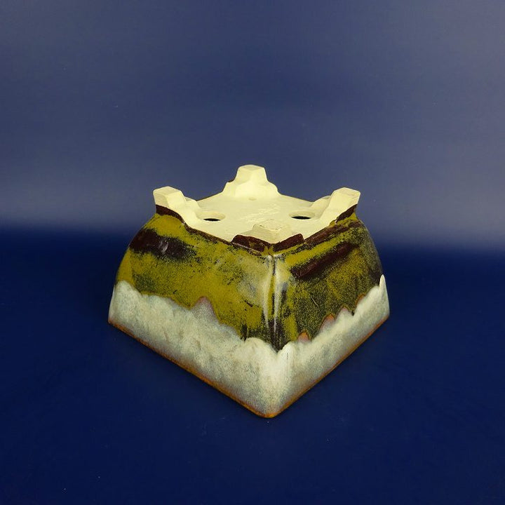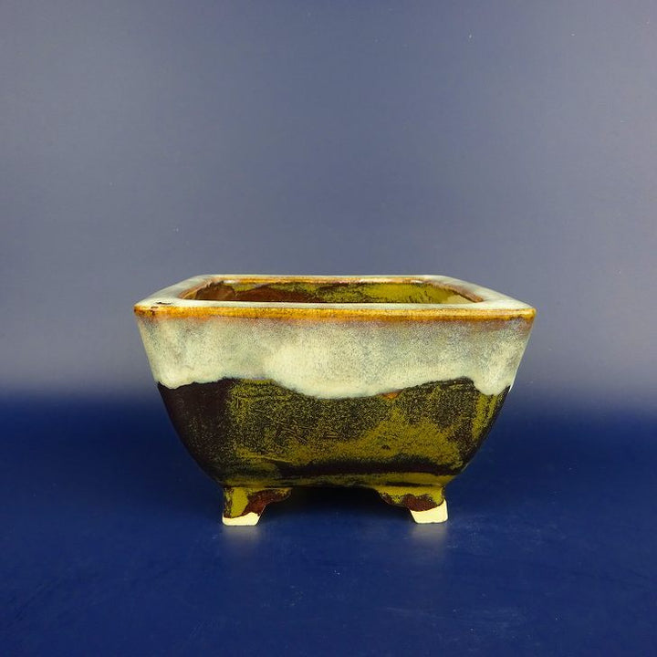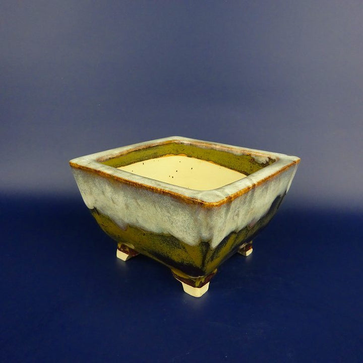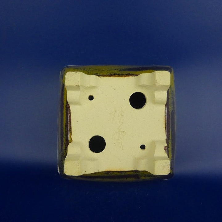 盆栽鉢 桂雲 福田桂雲 小型 長辺 約 12cm 正方鉢 釉薬 新品 m1198409367