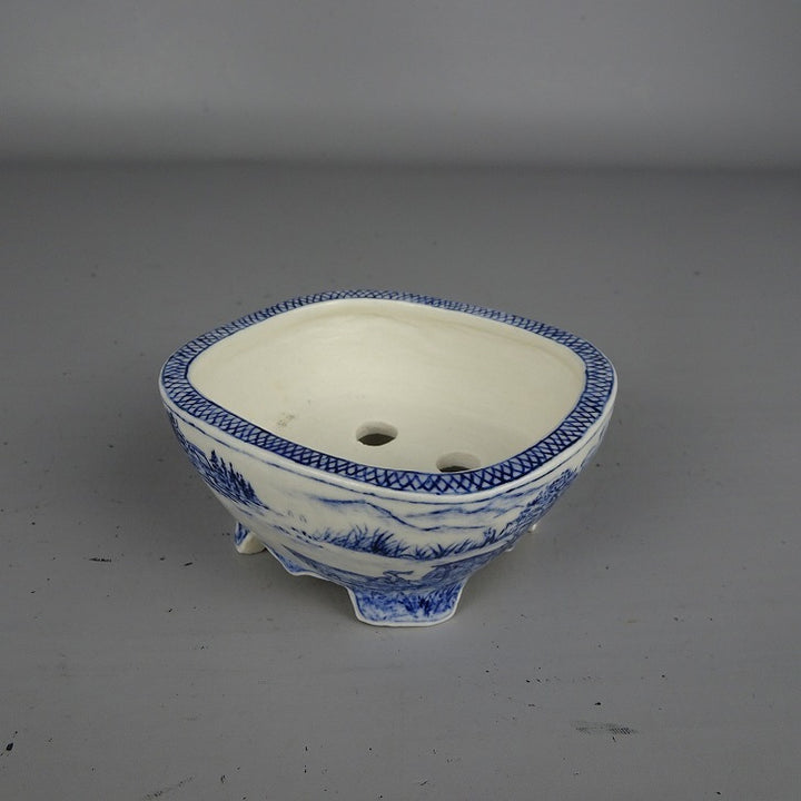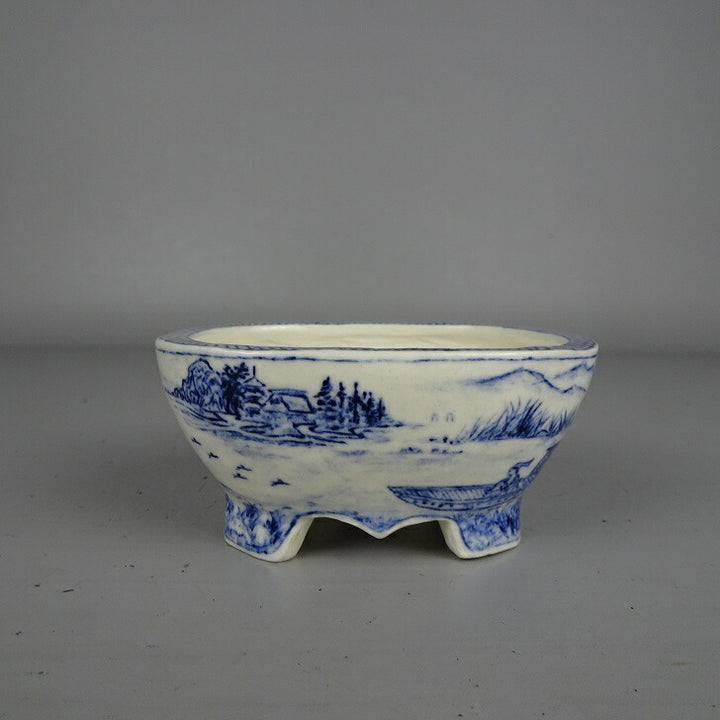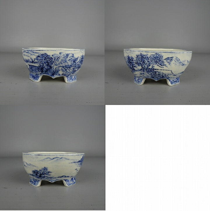 盆栽鉢 梢風 小鉢 長辺 約 9.2cm 長方鉢 染付 山水図 鑑賞 観賞用 新品 c1203455375