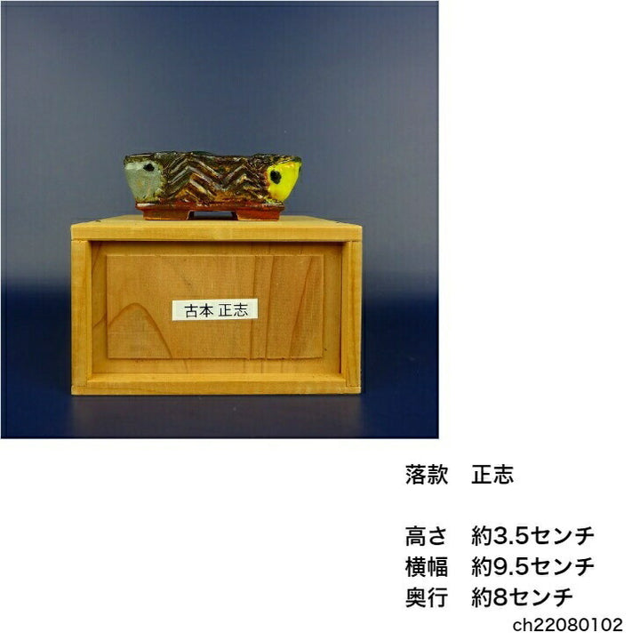 盆栽鉢 正志 古本正志 切足 長方鉢 蟹 釉薬 観賞用 現品 新品 素敵な鉢です。 古本正志 盆栽業を営む家に生まれ、18才から鉢作りを始める。 フクダ工房にて本格的に作陶の活動に入る。...