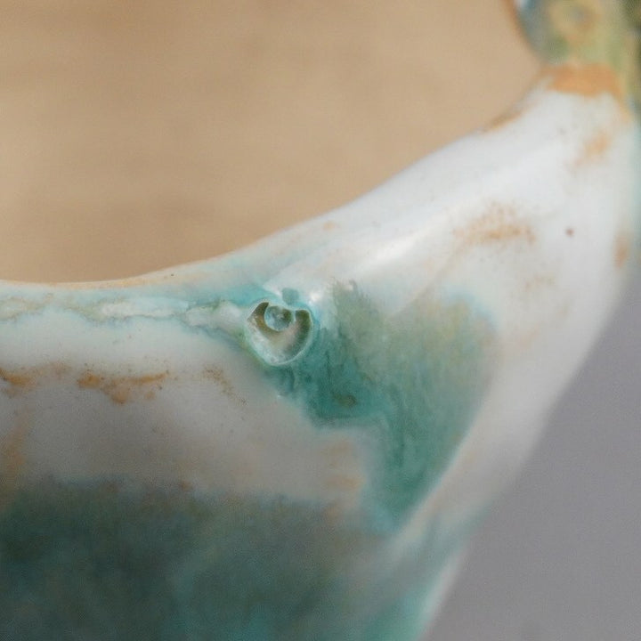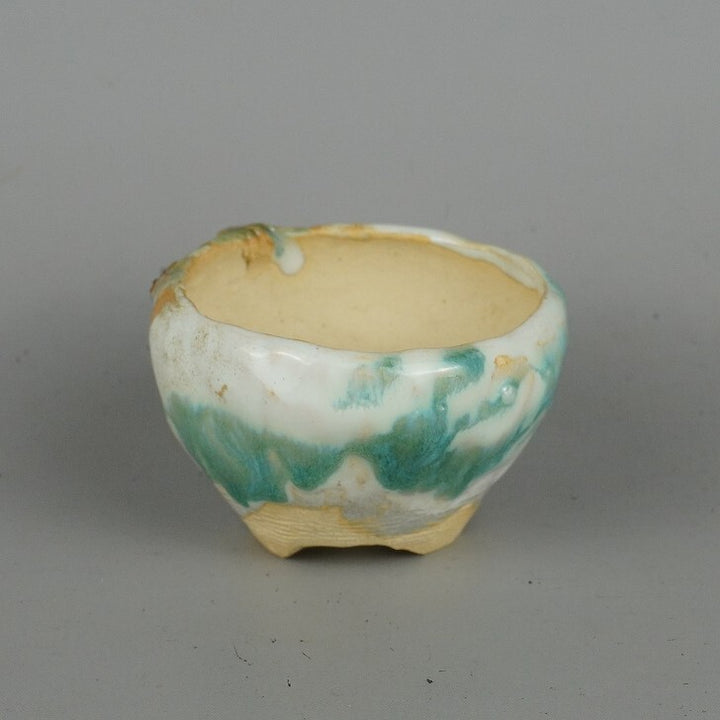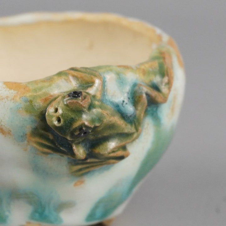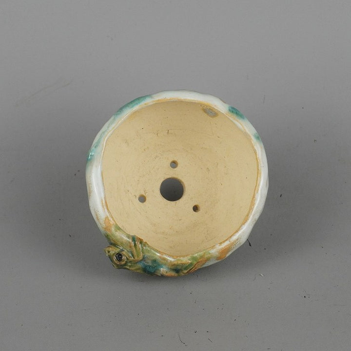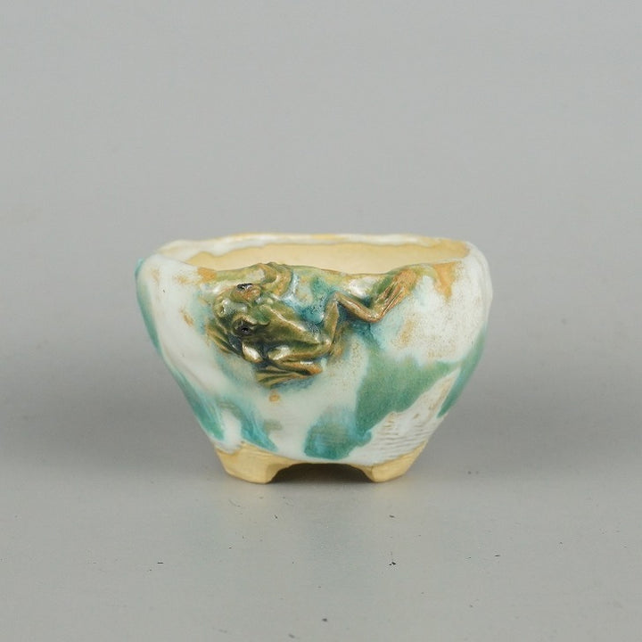 盆栽鉢 正志 古本正志 小鉢 長辺 約7.5cm 丸鉢 蛙付 かえる カエル 釉薬 観賞用 新品 r1198406682