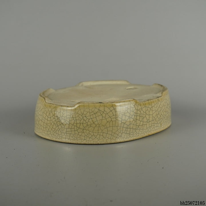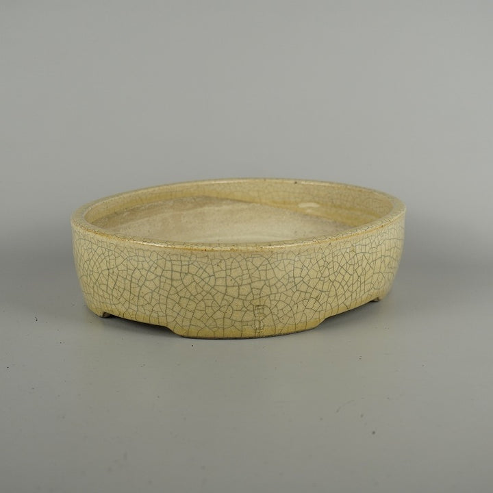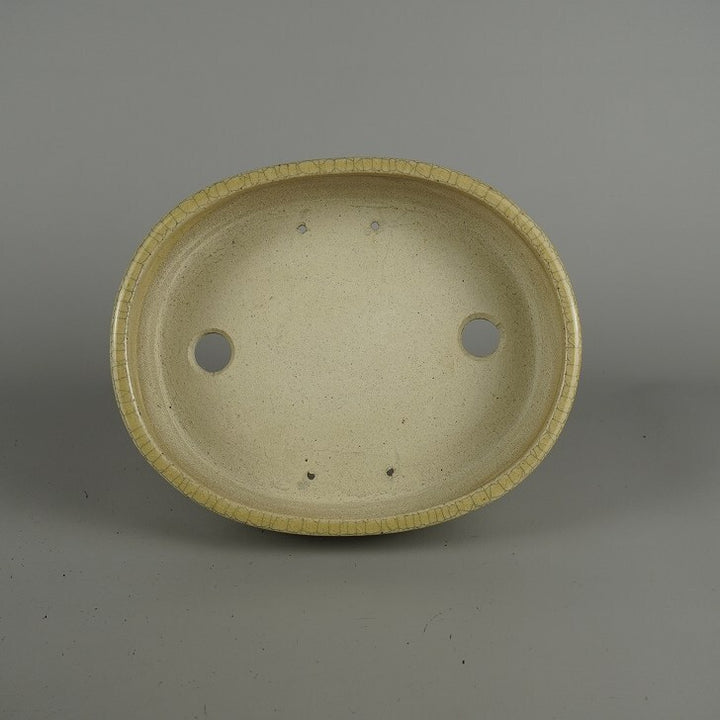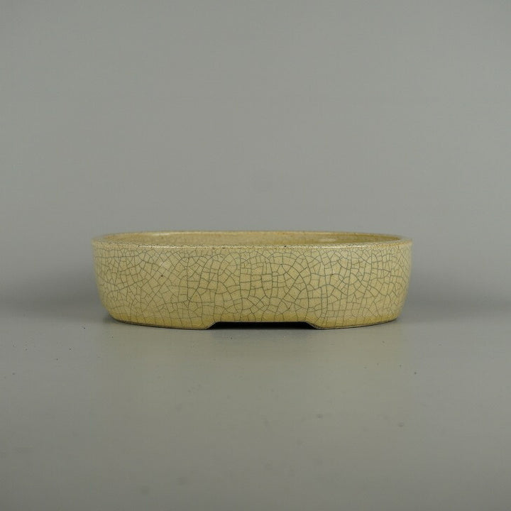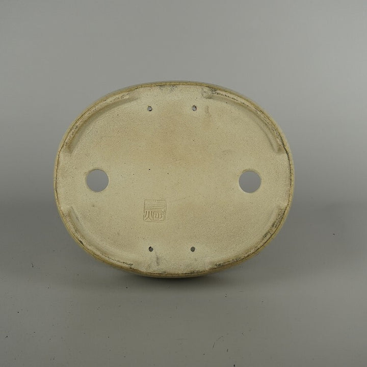 盆栽鉢 真山 寺畑 中型 長辺 約 21.8cm 楕円鉢 貫入 釉薬 新品 u1202096740