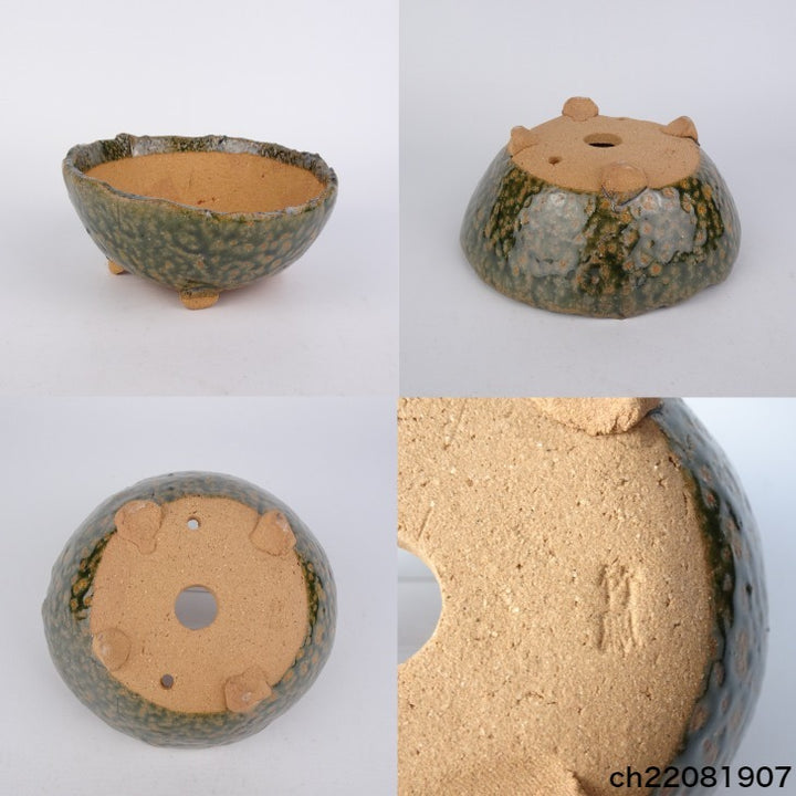 盆栽鉢 竹鳳 小型 長辺 約12cm 丸鉢 釉薬 数量物 新品 職人さんが1つ1つ丁寧に作り上げた鉢です。...