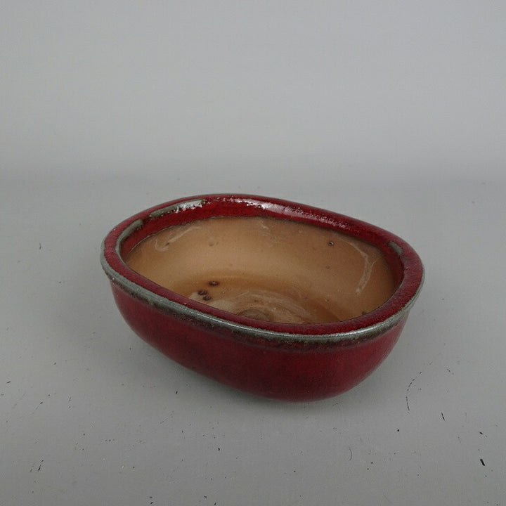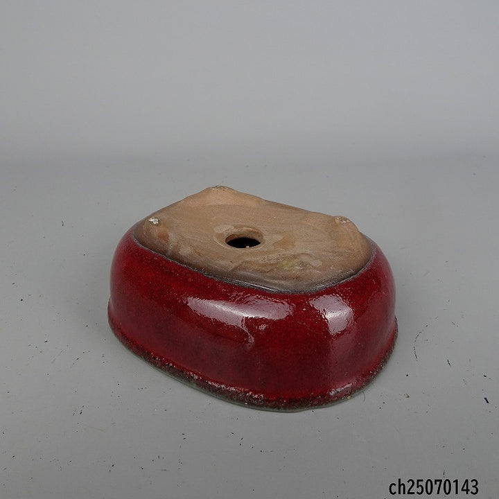 盆栽鉢 落款なし 小型 長辺 約 12.5cm 楕円鉢 釉薬 中国鉢 新品 数量物 e1200285946