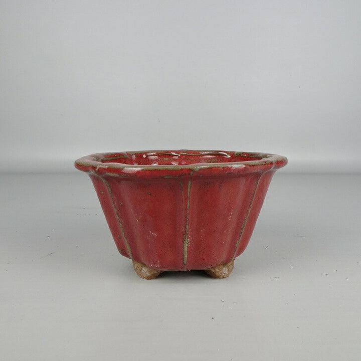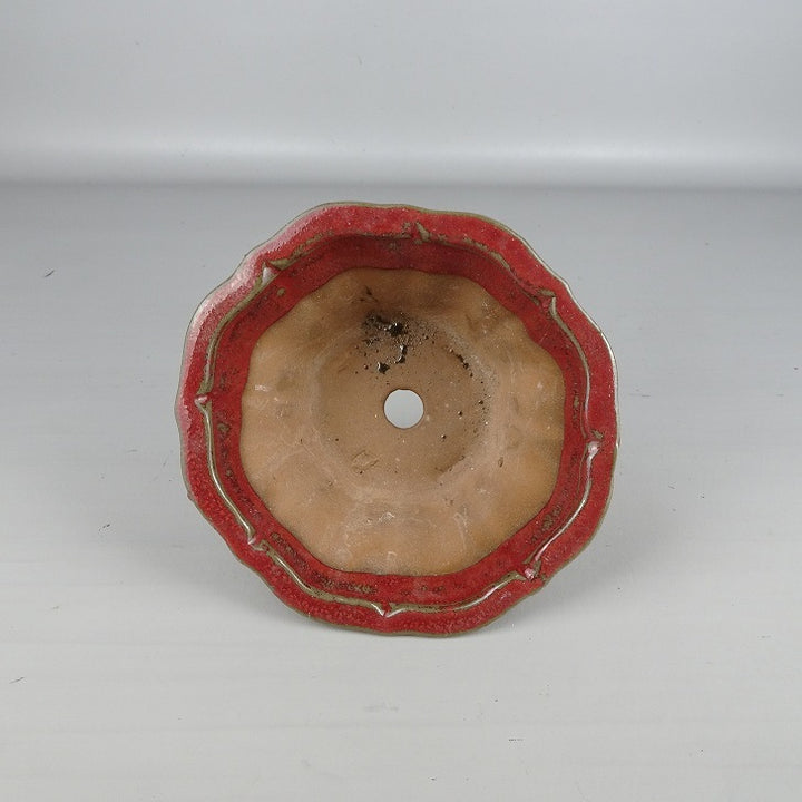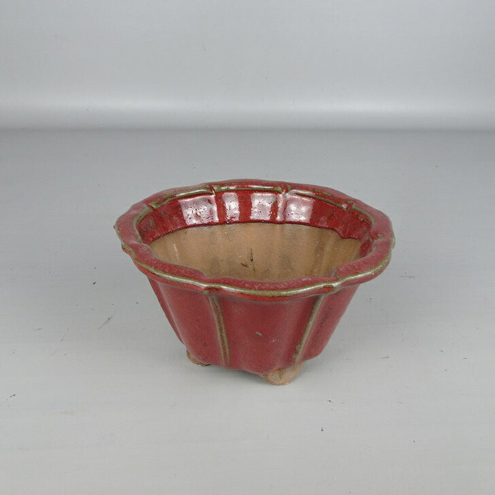 盆栽鉢 落款なし 小型 長辺 約 13cm 輪花鉢 外縁 釉薬 中国鉢 新品 数量物 e1200291762