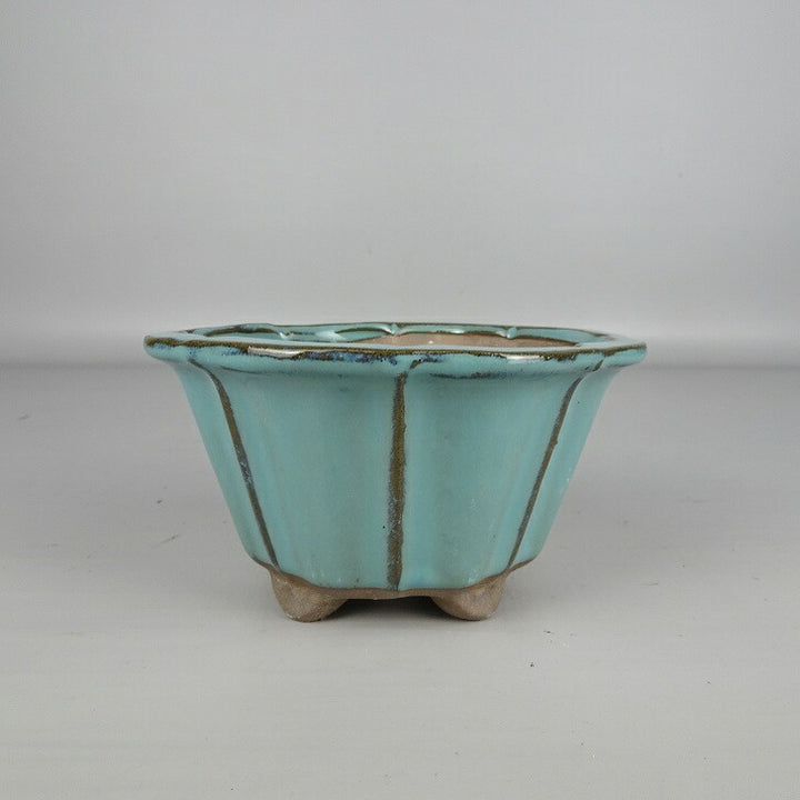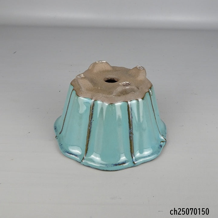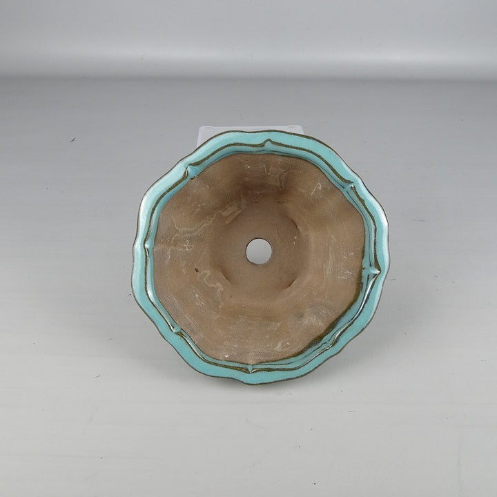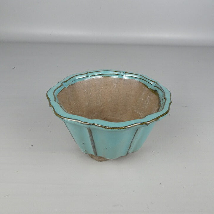 盆栽鉢 落款なし 小型 長辺 約 13cm 輪花鉢 外縁 釉薬 中国鉢 新品 数量物 n1200289871
