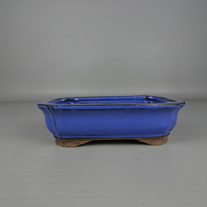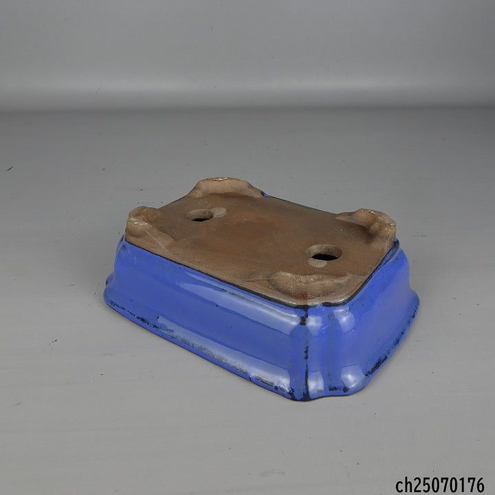 盆栽鉢 落款なし 小型 長辺 約 16.5cm 長方鉢 外縁 隅入 釉薬 中国鉢 新品 数量物 w1200259830