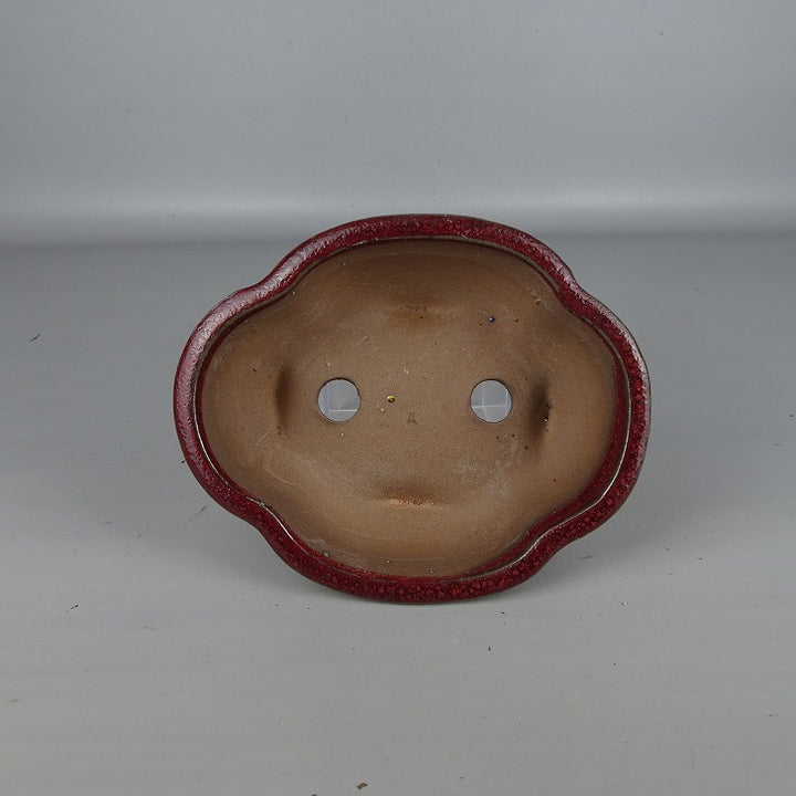 盆栽鉢 落款なし 小型 長辺 約 16cm 木瓜鉢 外縁 釉薬 中国鉢 新品 数量物 d1200300330