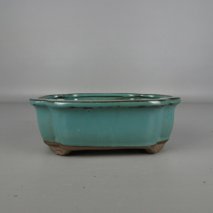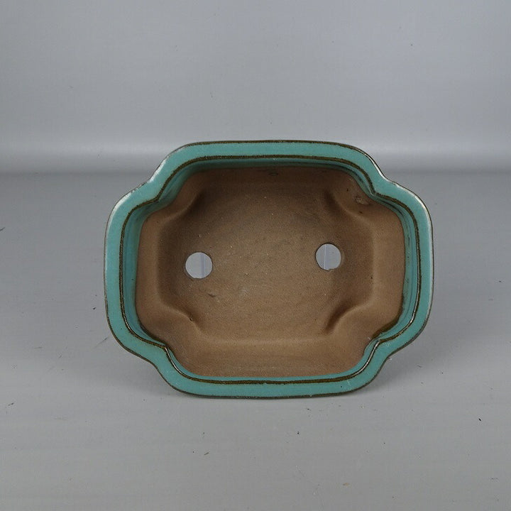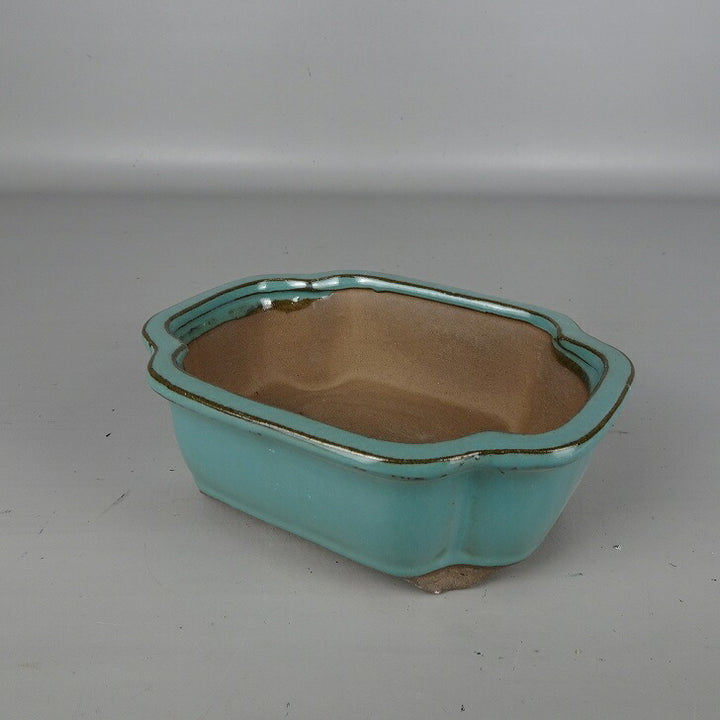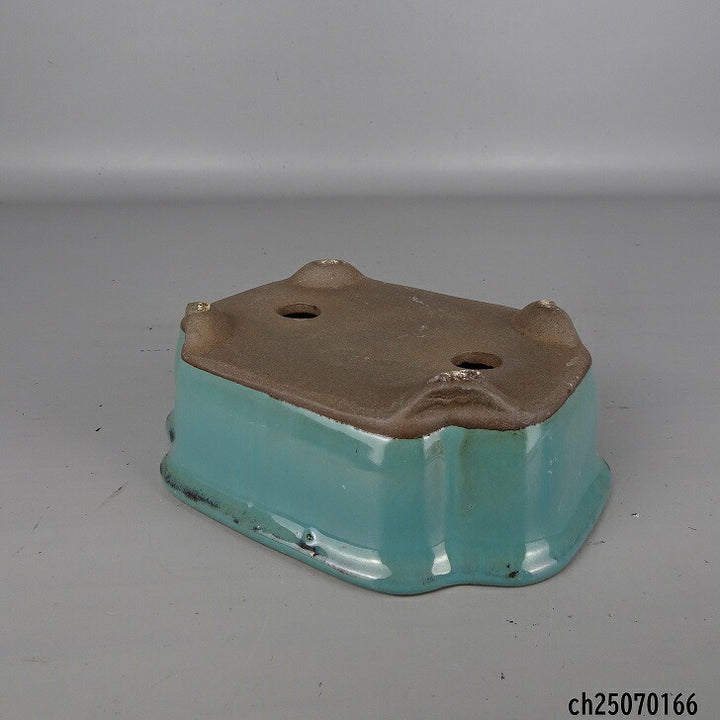 盆栽鉢 落款なし 小型 長辺 約 16cm 長方鉢 外縁 隅入 釉薬 中国鉢 新品 数量物 t1200287974