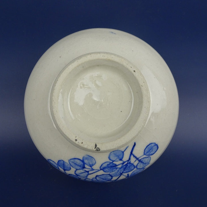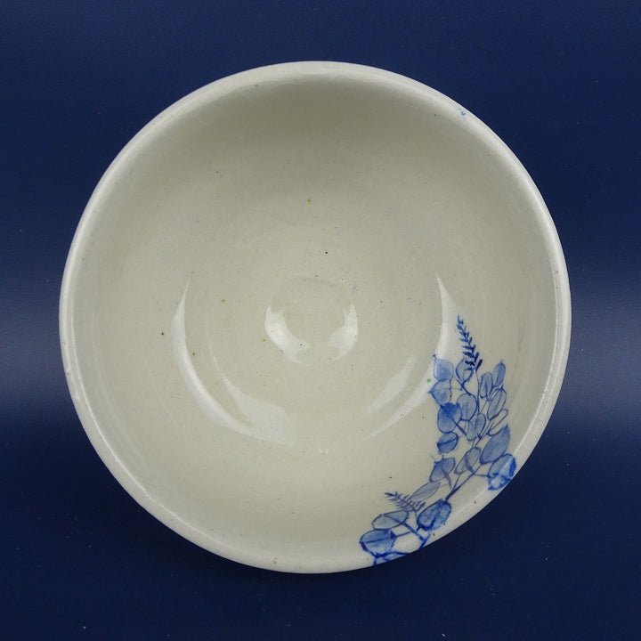 盆栽鉢 落款なし 小型 長辺 約12cm 丸鉢 染付 山野草 底穴無 新品 c1198413005