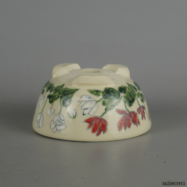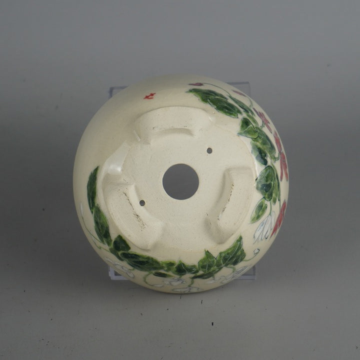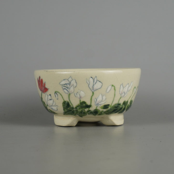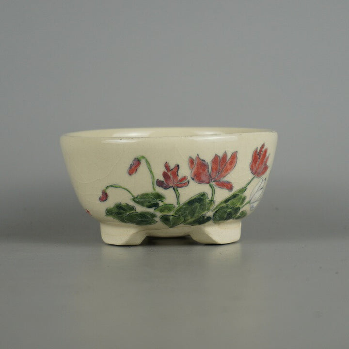 盆栽鉢 蝉山 小型 長辺 約 11.5cm 丸鉢 色絵 花 はな ハナ 植物 観賞用 新品 v1198443154