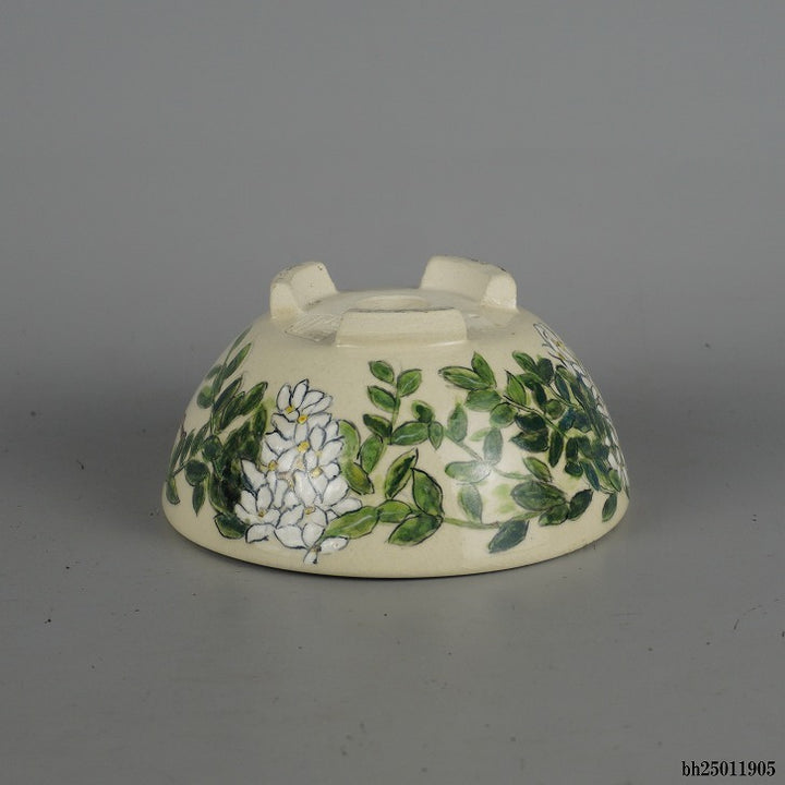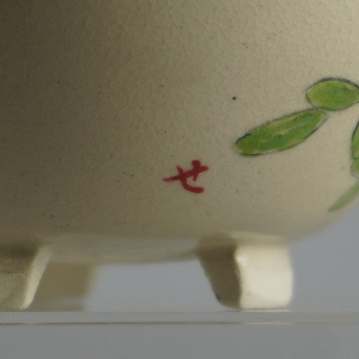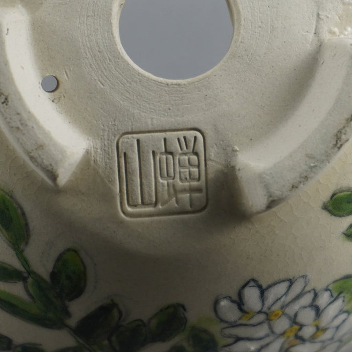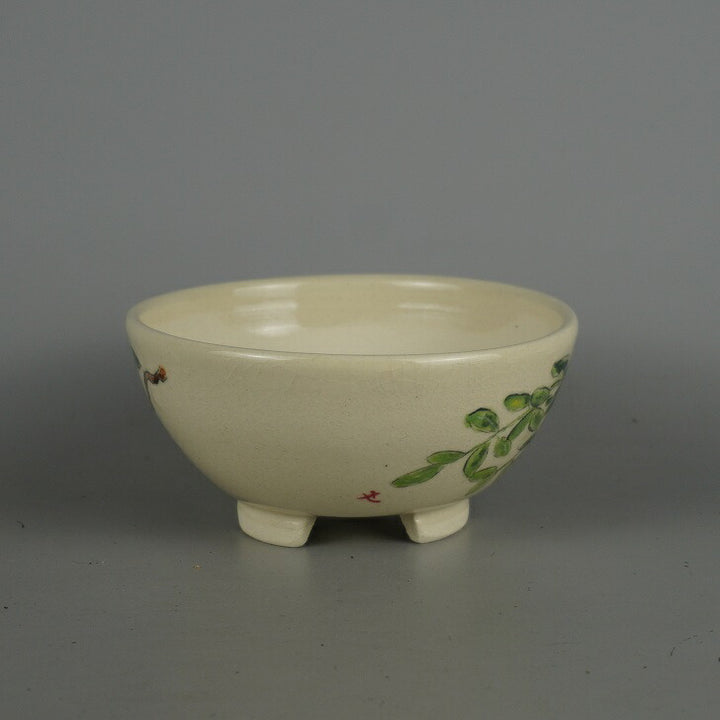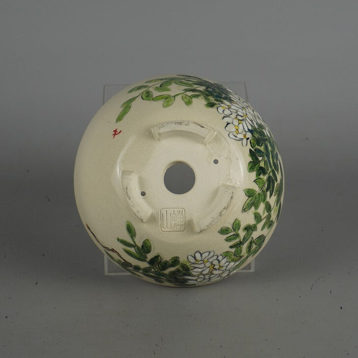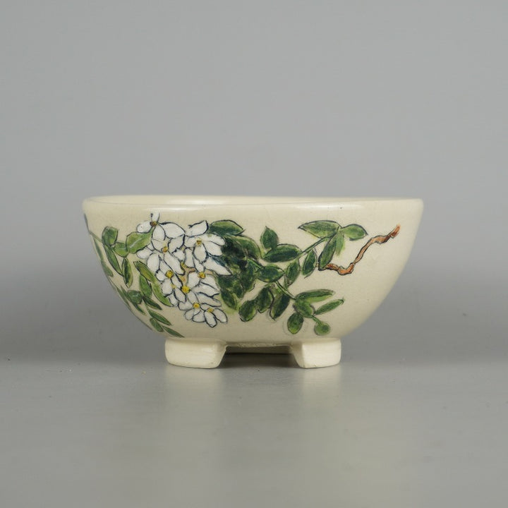 盆栽鉢 蝉山 小型 長辺 約 12.5cm 丸鉢 色絵 花 白花 植物 観賞用 新品 b1198422965
