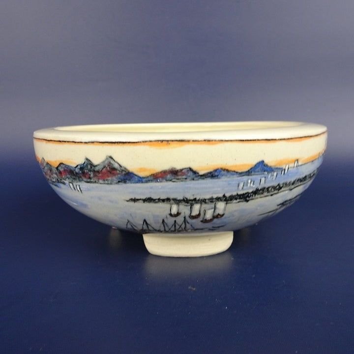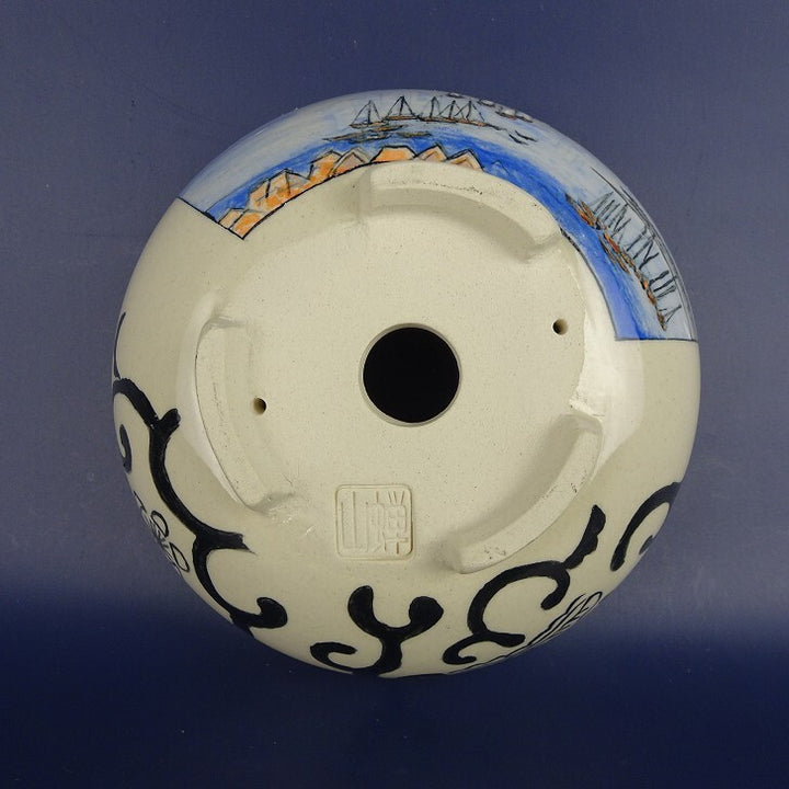 盆栽鉢 蝉山 小型 長辺 約 13.2cm 丸鉢 色絵 風景 辻尻 舟 山 花 植物 観賞用 新品 r1198411303
