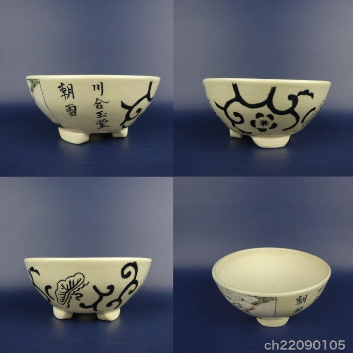 盆栽鉢 蝉山 小型 長辺 約13cm 丸鉢 色絵 風景 観賞用 新品 e1198414414