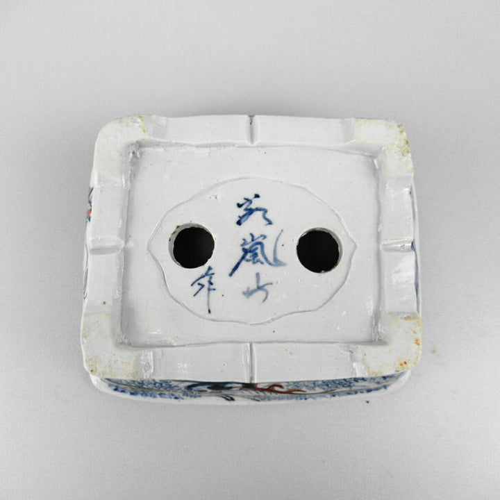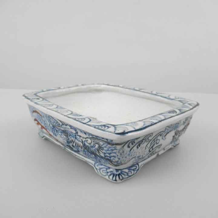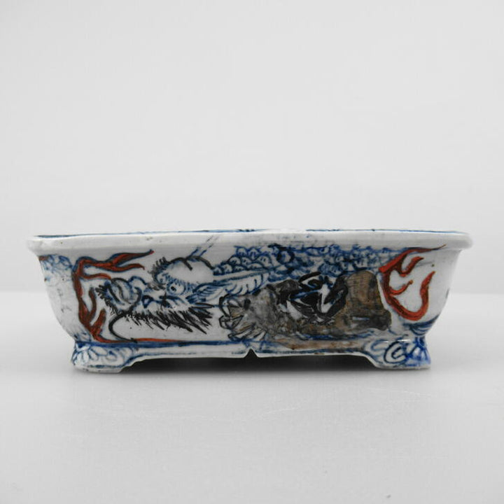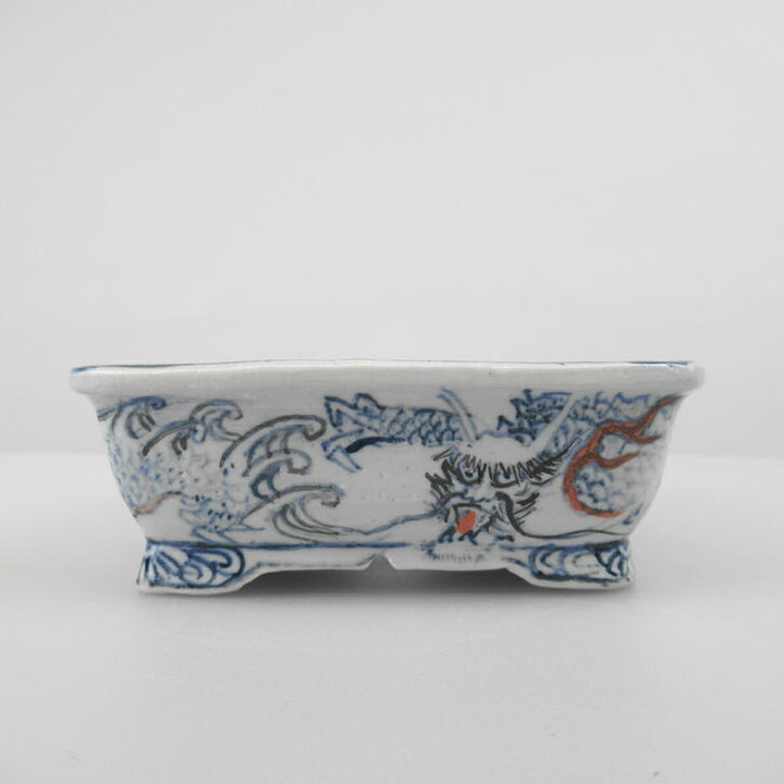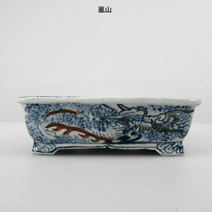 盆栽鉢 谷 嵐山 小型 長辺 約11.5cm 長方鉢 色絵 龍 観賞用 新品 w1198411421