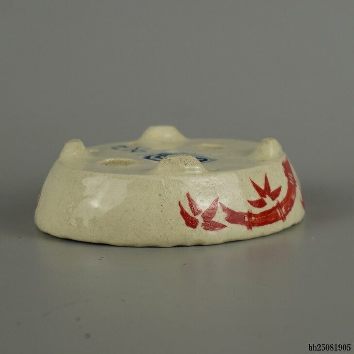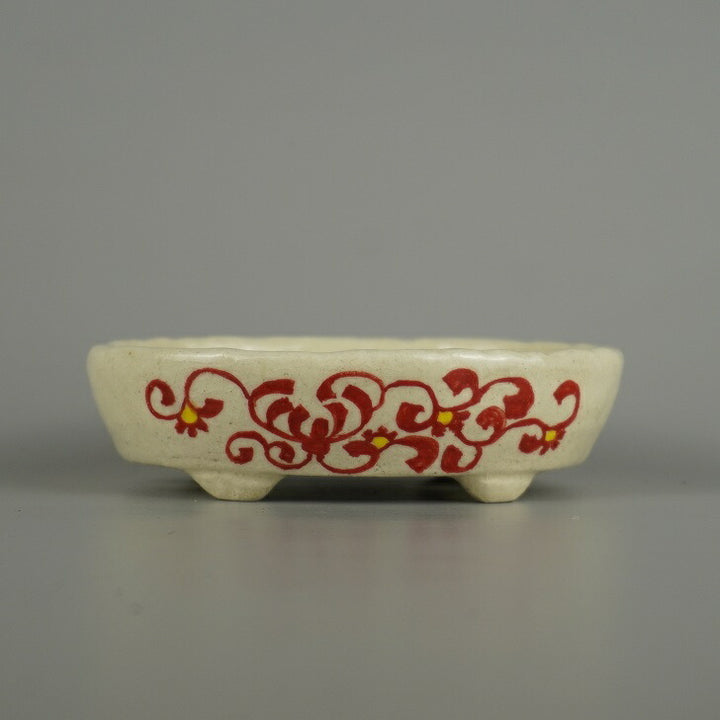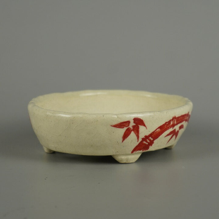 盆栽鉢 越前文山 小型 長辺 約 12.5cm 楕円鉢 赤絵 竹 笹 花 はな ハナ 鑑賞 観賞用 新品 v1206125302