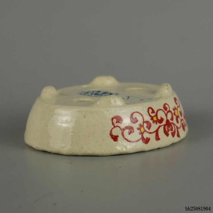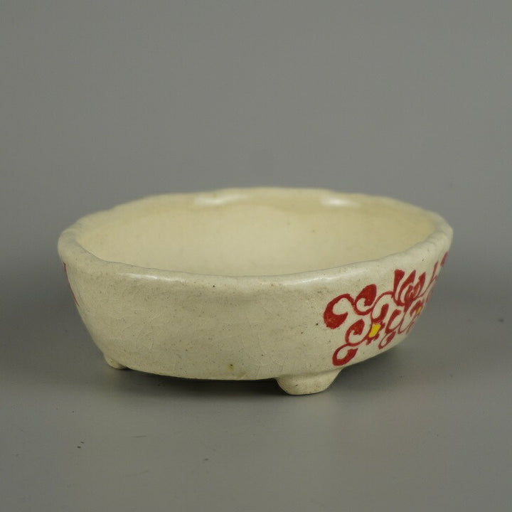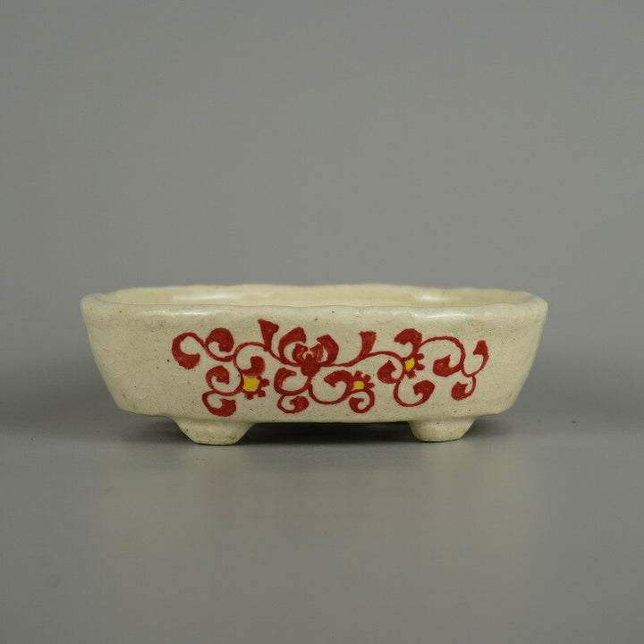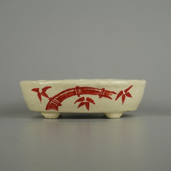 盆栽鉢 越前文山 小型 長辺 約 12.8cm 楕円鉢 赤絵 竹 笹 花 はな ハナ 鑑賞 観賞用 新品 w1206091814