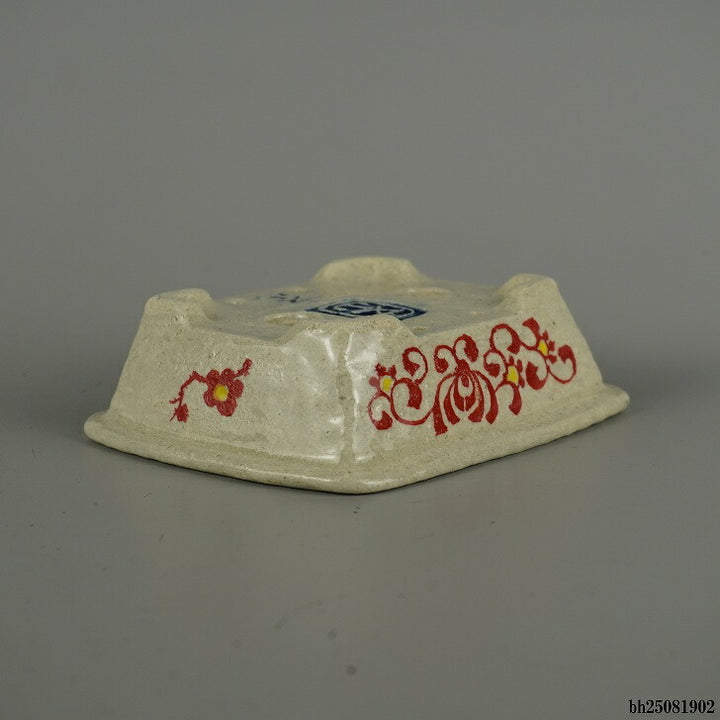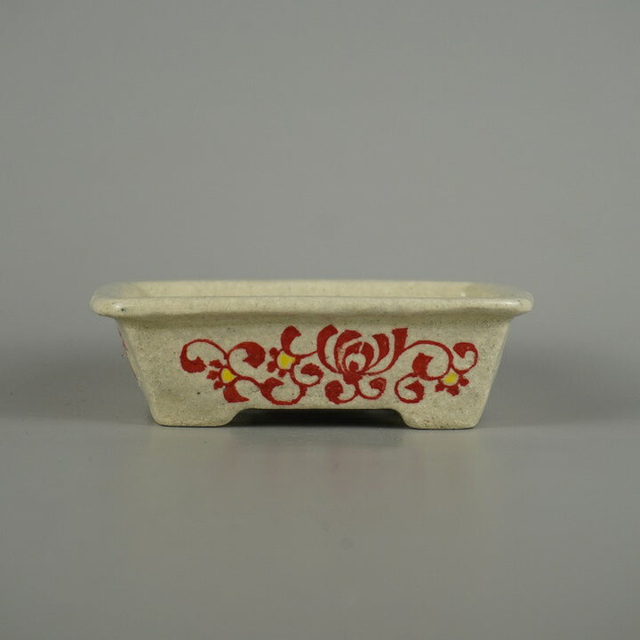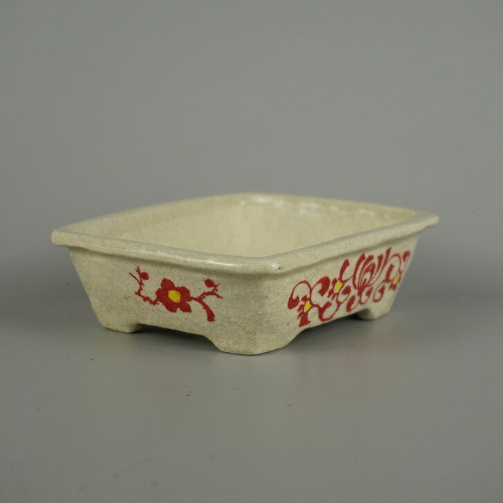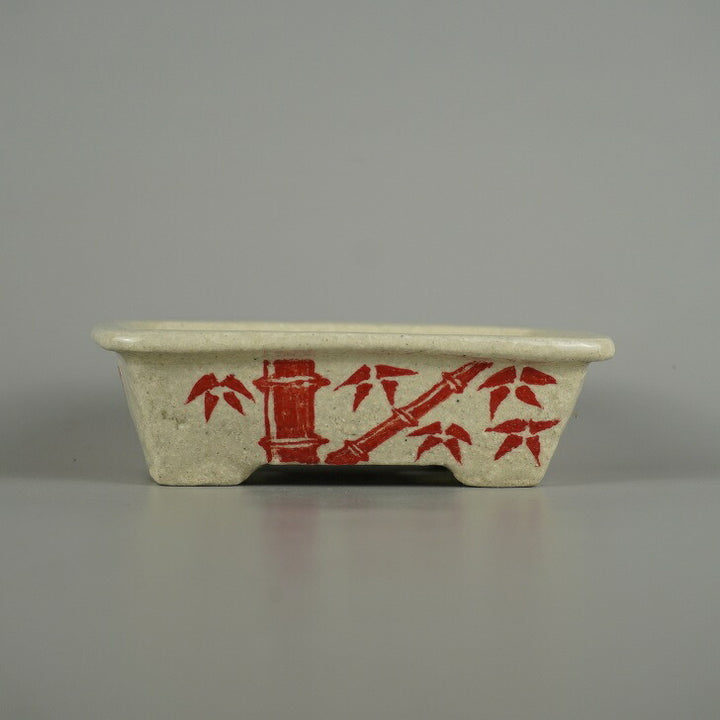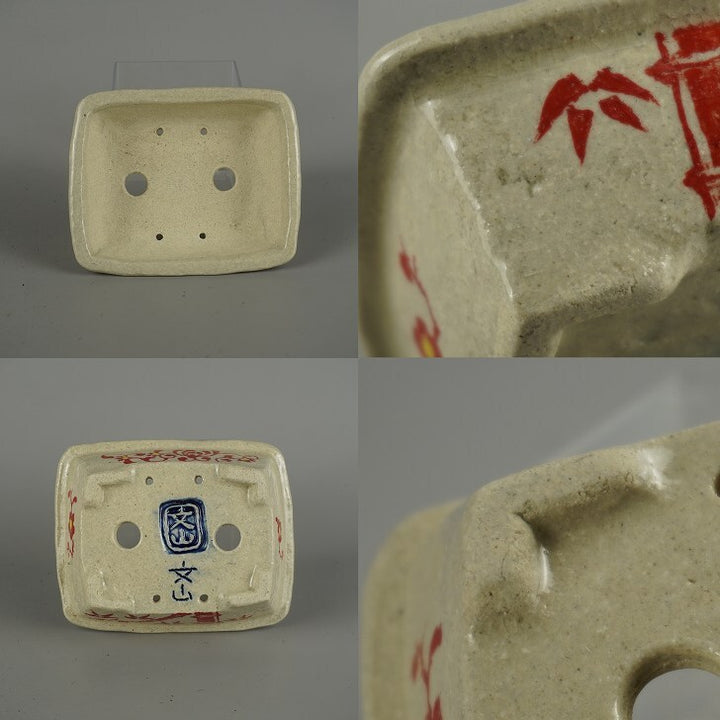 盆栽鉢 越前文山 小型 長辺 約 13cm 長方鉢 赤絵 竹 笹 花 はな ハナ 鑑賞 観賞用 新品 b1206104162