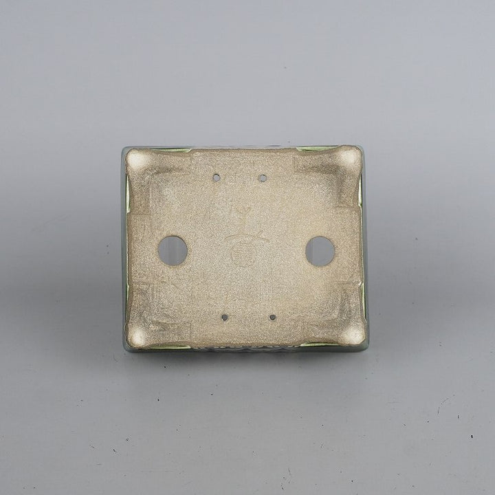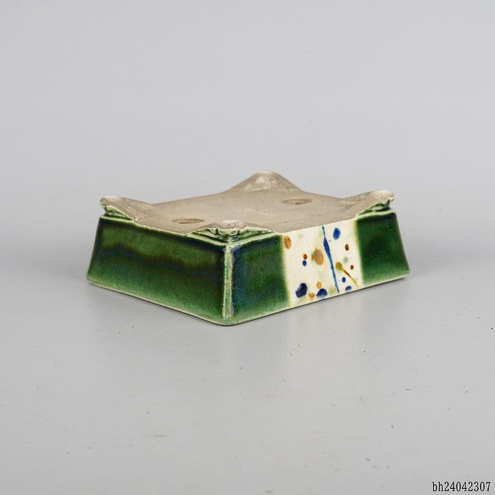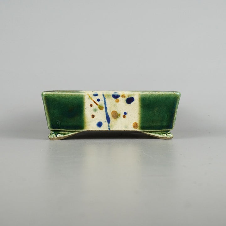 盆栽鉢 里美 寺畑陶園 小型 長辺 約15.7cm 長方鉢 雲足 色絵 水玉 波文様 オリベ 釉薬 新品 u1198429514
