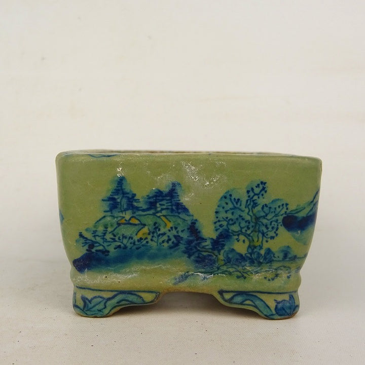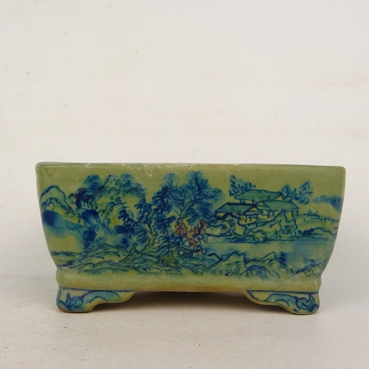 盆栽鉢 陶翠 長方鉢 小型 長辺 約10cm 色絵 山水画 段足 人物 現品 中古鉢 商 品 名陶翠 陶翠筆 サ イ ズ高さ 約4.5センチ...
