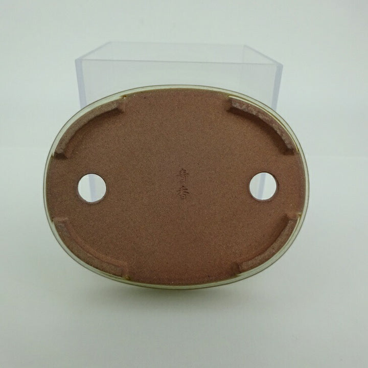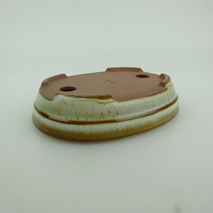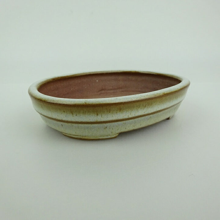盆栽鉢 青香 小型 長辺 約10cm 楕円鉢 中帯 釉薬 k1198409035